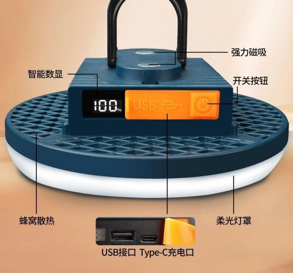 超亮戶外露營燈擺攤燈充電超亮磁吸長續航移動野營燈飛碟燈野營燈