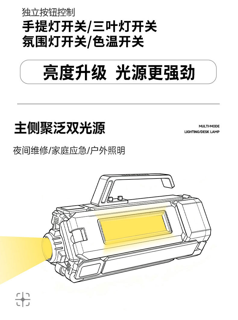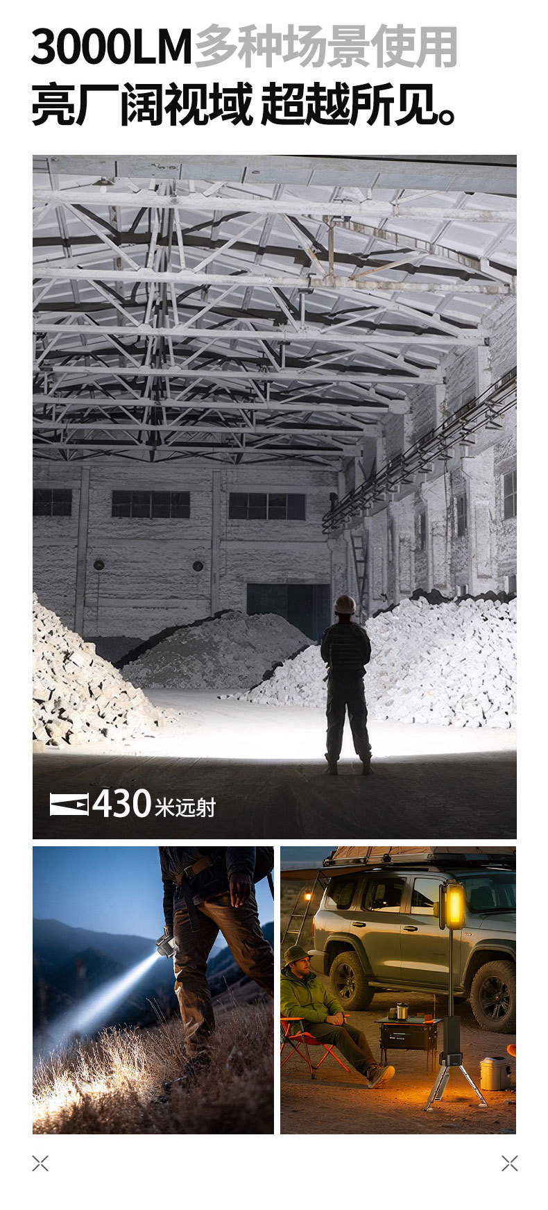 新款戶外LED營地燈強光探照燈超長續航高亮應急移動工作燈