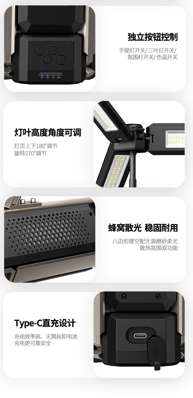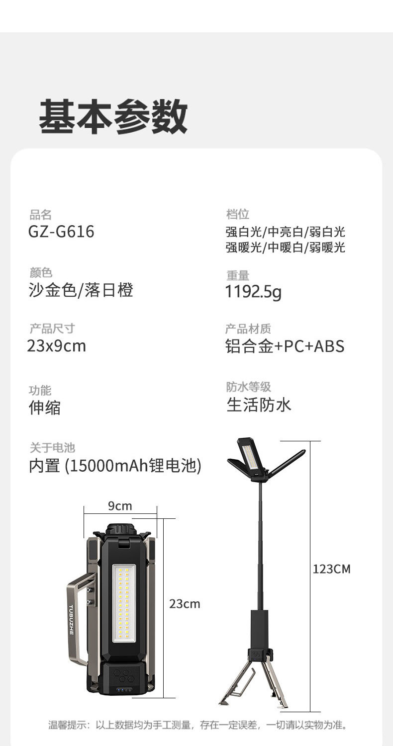 | 顔色 | 沙金色(全地形露營燈3000LM+15000mAh)配手提包 |