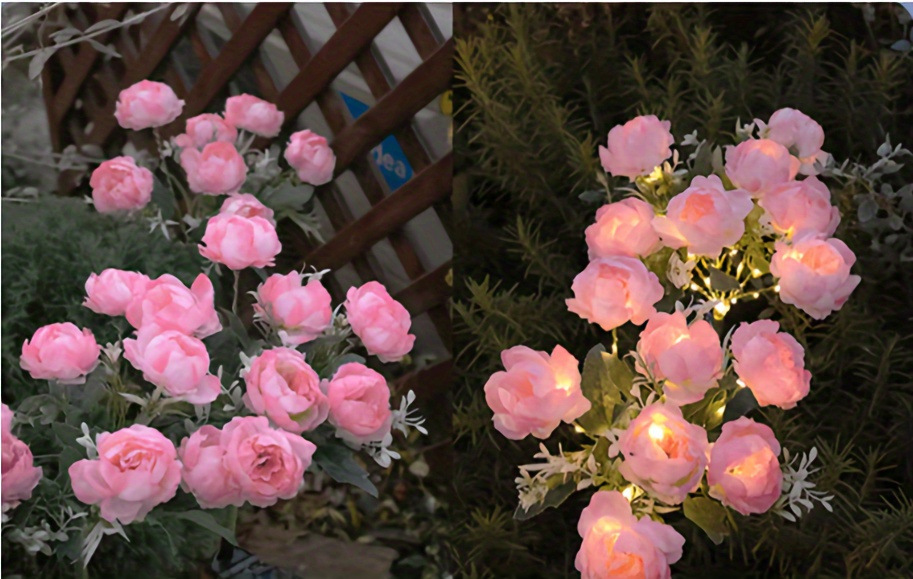 2pcs Solar Powered Peony Flower Light 7 Head Fancy Lights