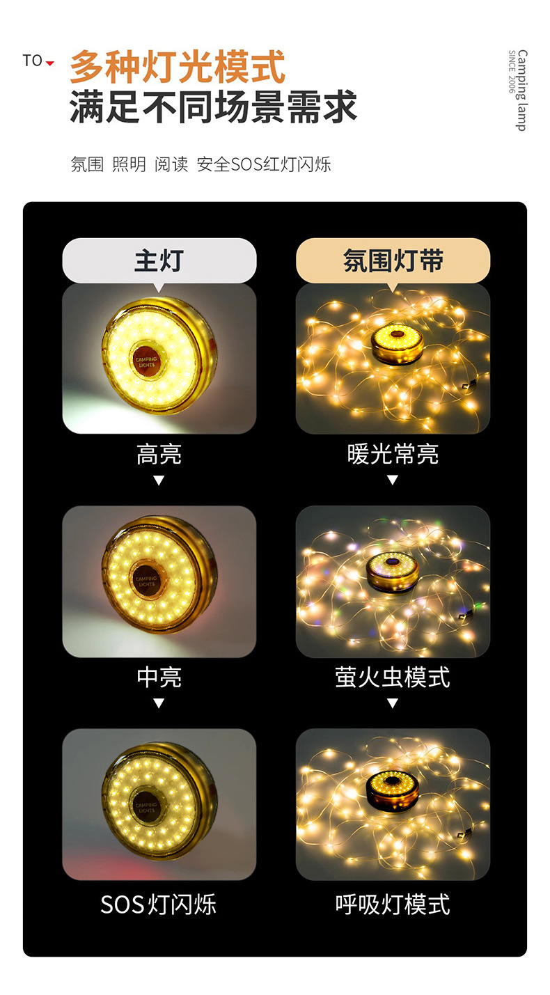 戶外燈照明燈收納氛圍野營燈串防水露營燈應急氛圍燈卷尺可攜式帳篷