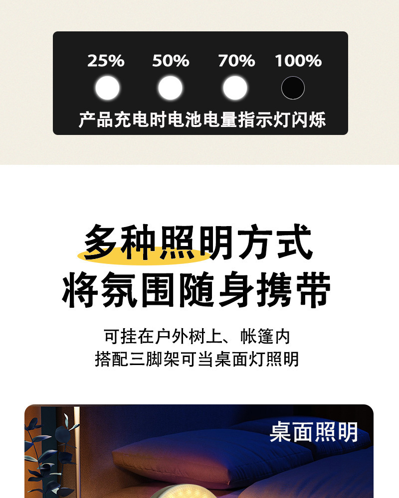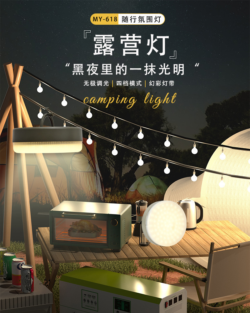 led戶外充電燈 便捷收納燈帶七彩氛圍燈營地照明長續航飛碟露營燈