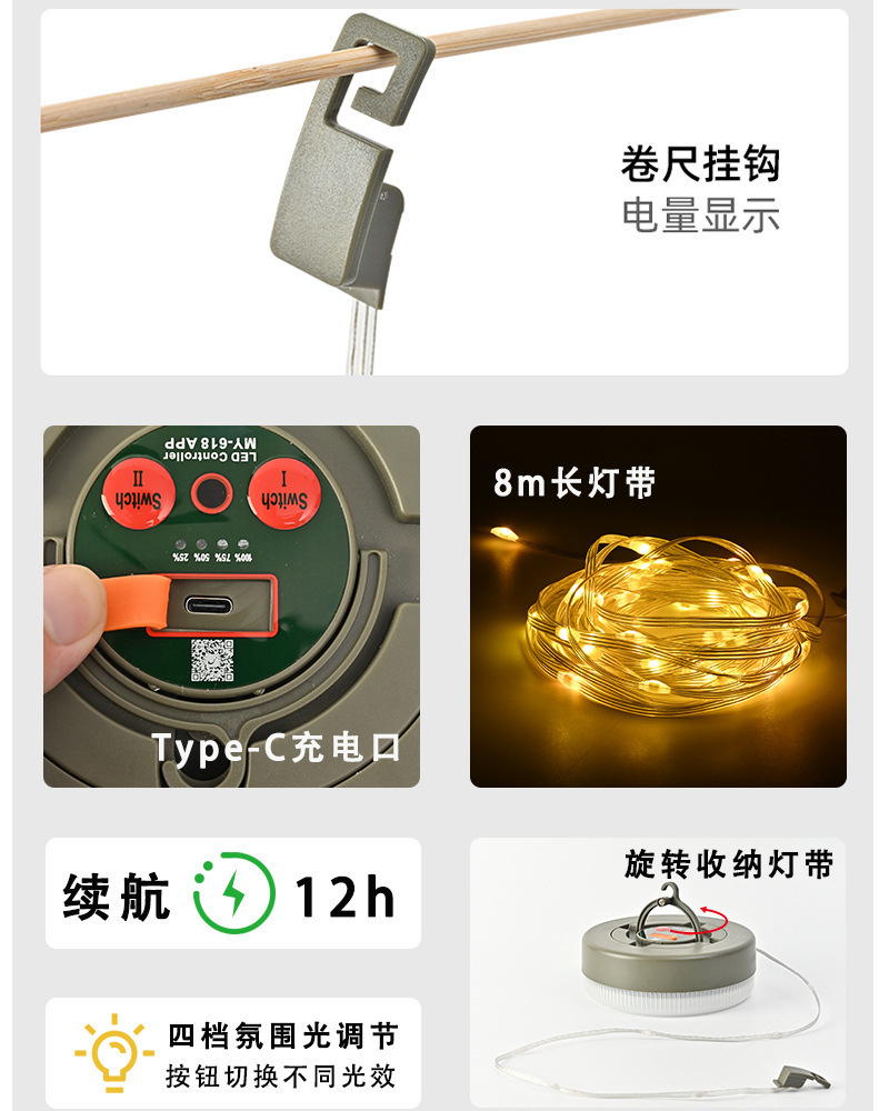 | 顔色 | 可收納燈串露營燈(高配幻彩燈帶)2000安培+搭配太陽能板 |