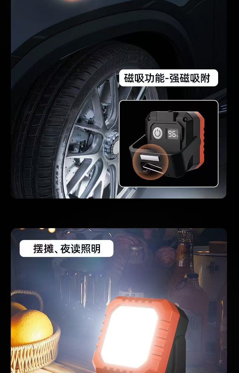 新款多功能手提燈數顯led磁鐵吸附usb充電工作燈懸掛式野營燈