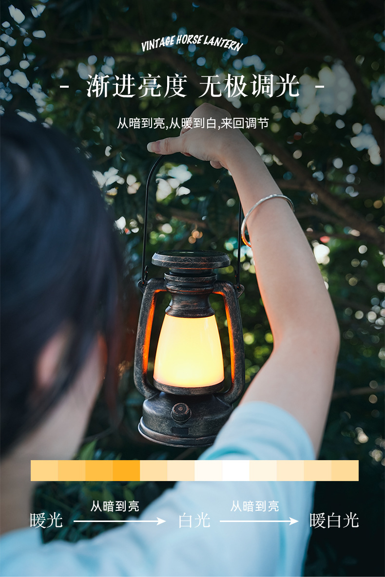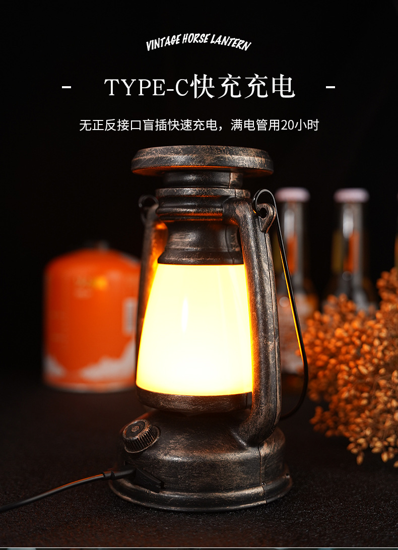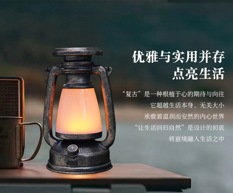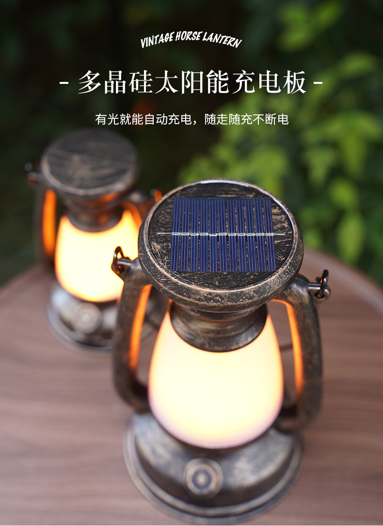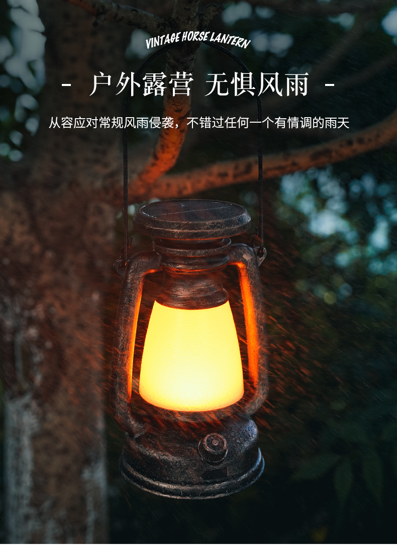 銀諾復古馬燈戶外露營燈超長續航老式煤油燈太陽能充電手提氛圍燈