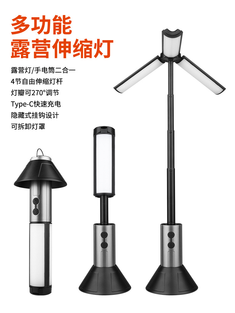 戶外多功能伸縮露營燈調節270度落地補光氛圍燈高亮照明強光手電