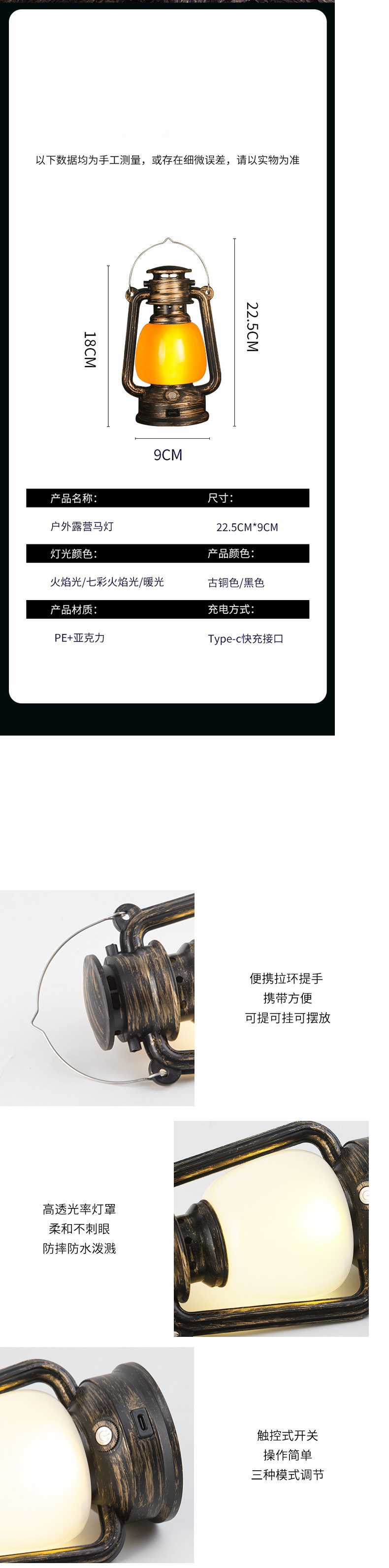 露營燈手提復古馬燈充電戶外爬山擺攤夜市提燈帳篷營地氛圍小夜燈