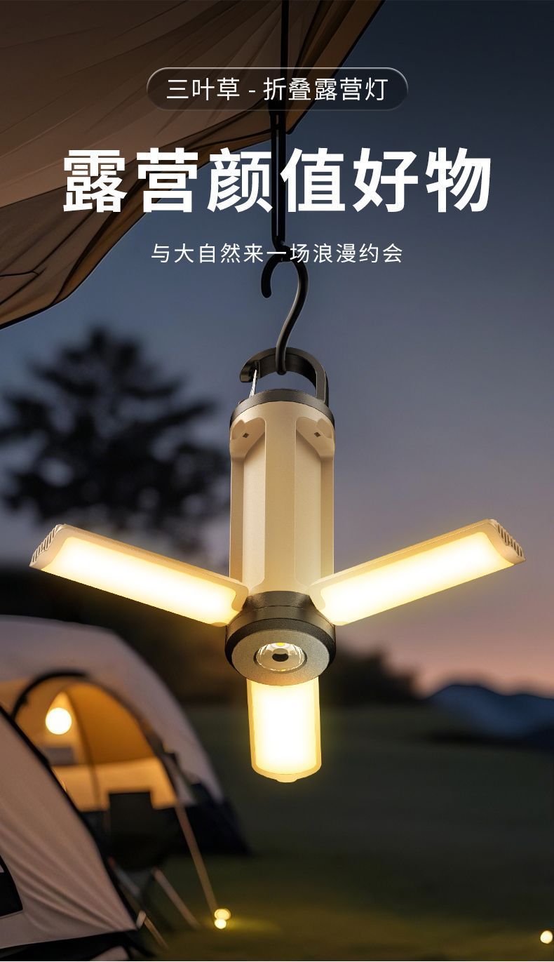 | 顔色 | 掛鉤槽設計+T6高亮燈珠-頂配款【標配】三葉折曡露營燈4000 |