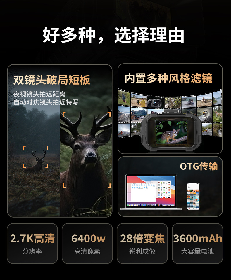新品4k高清NV109紅外線夜視儀 雙鏡頭長焦狩獵戶外夜拍錄像望遠鏡