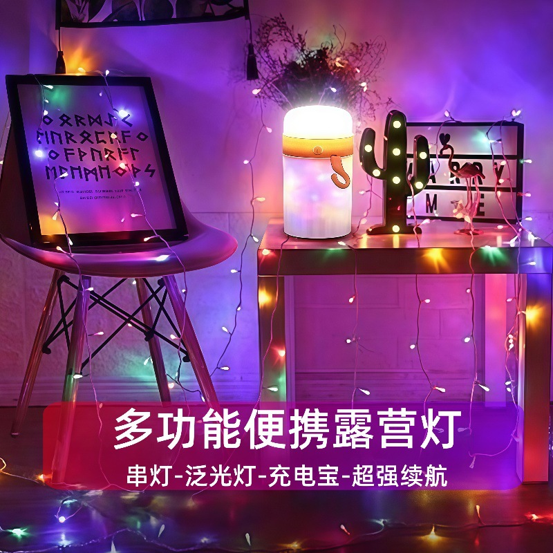 夜市擺攤七彩氛圍串燈長續航掛鉤式串燈戶外多功能氛圍燈充電露營