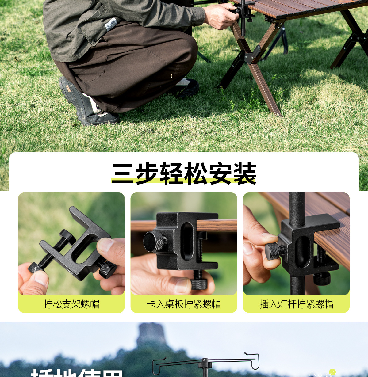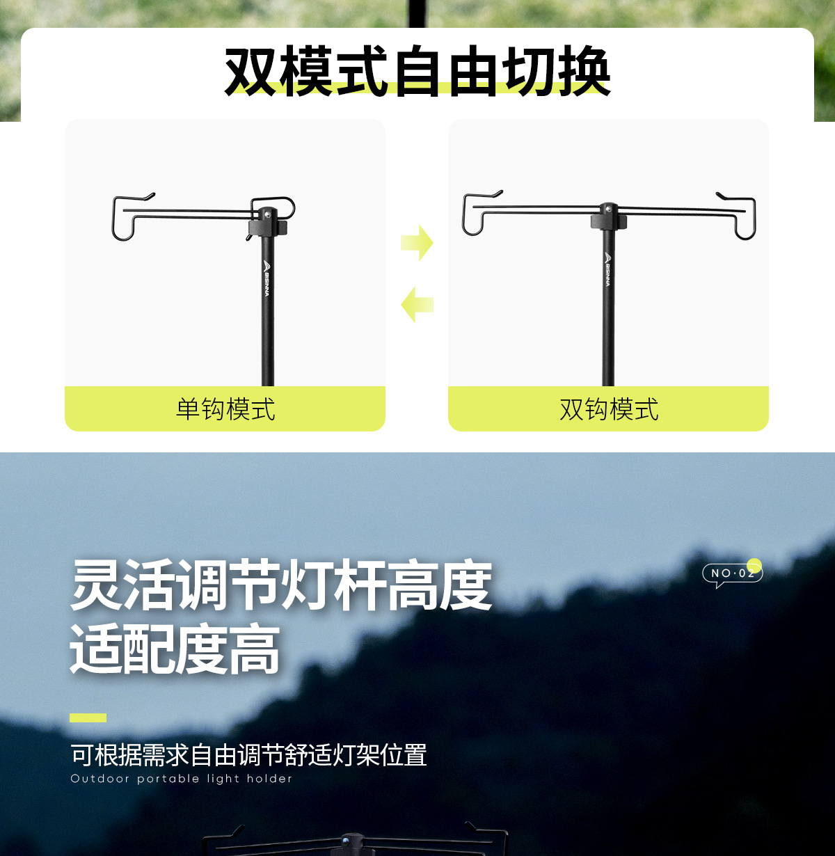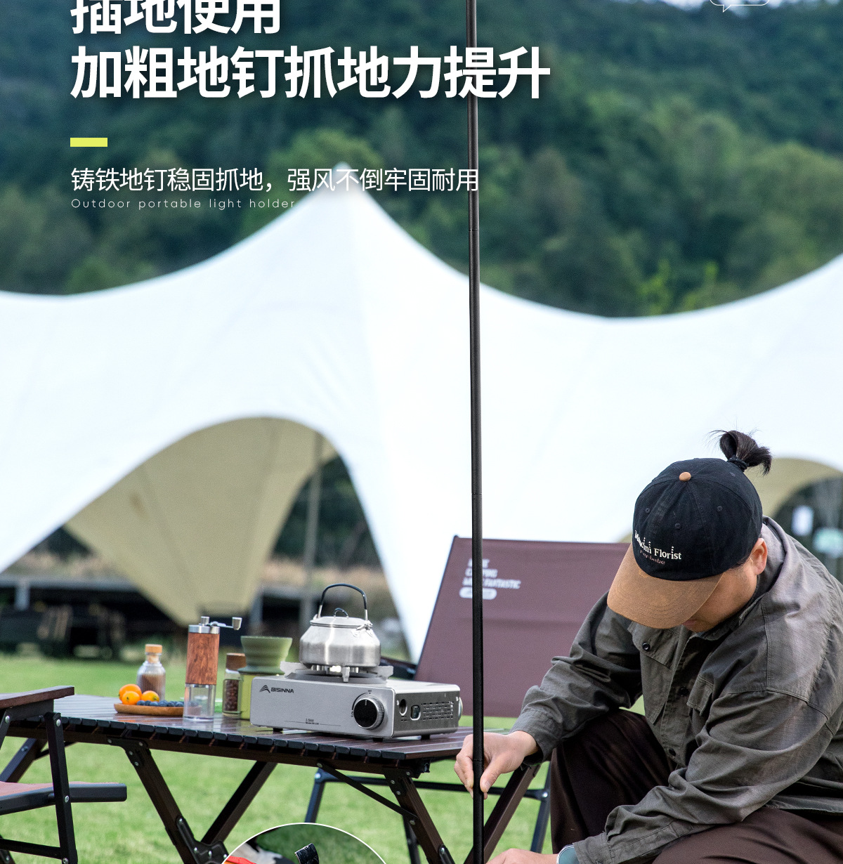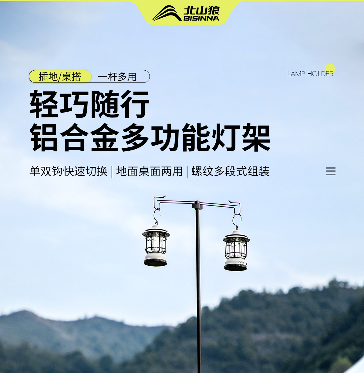 北山狼戶外露營野營折疊照明燈架鋁合金可攜式燈桿支架營地燈夜釣燈