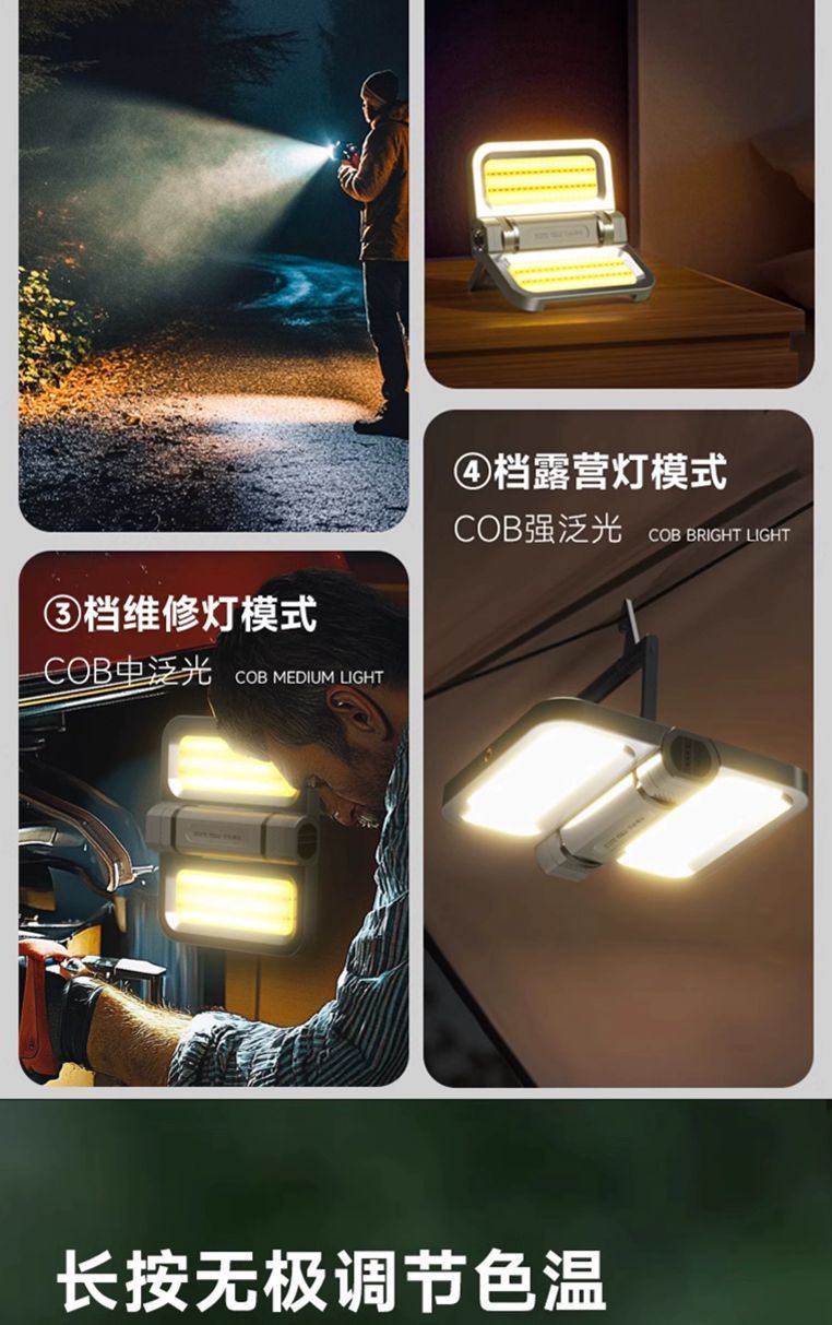 Y1L多功能戶外露營燈家用應急燈工地充電照明燈強磁吸可折疊地攤