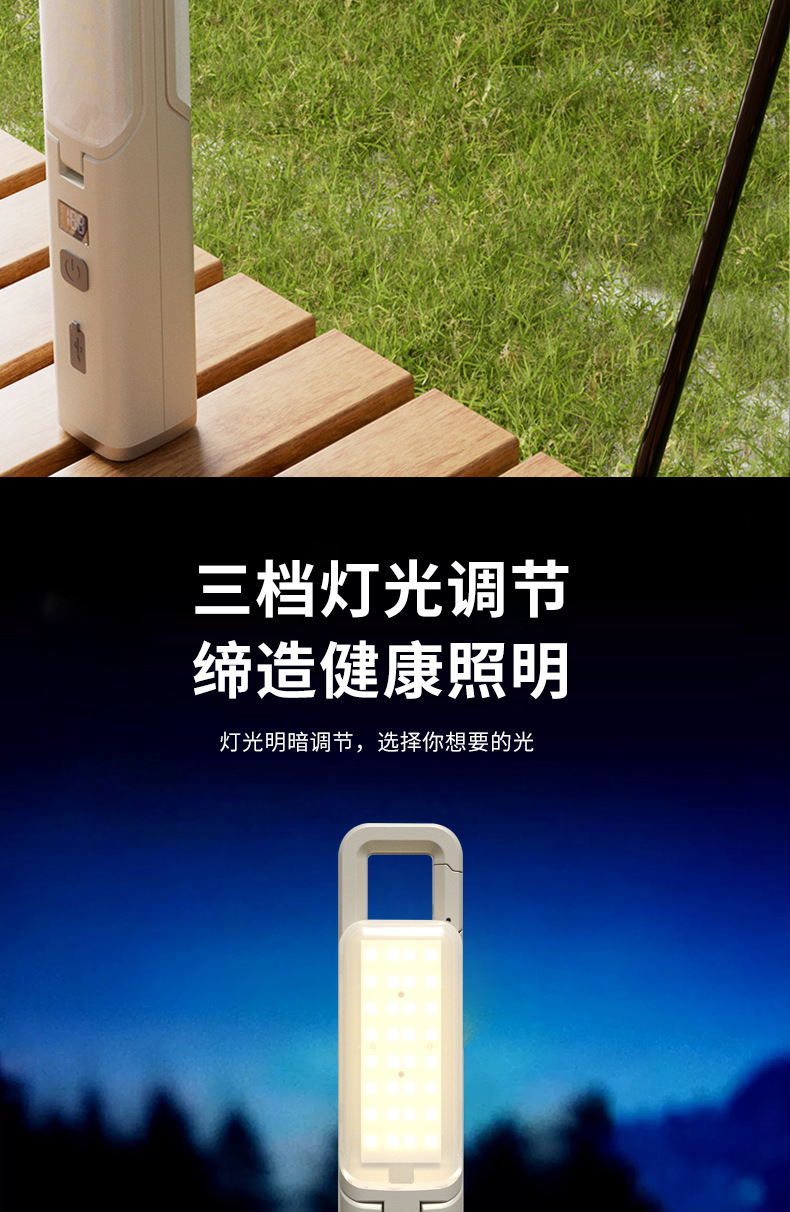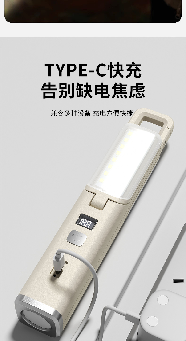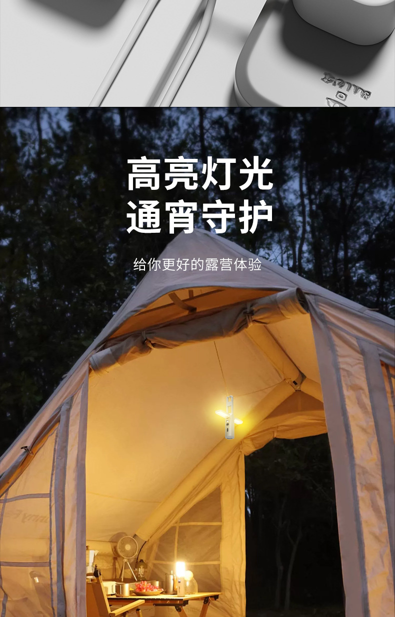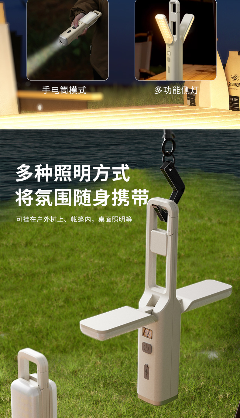 強光超亮手電筒營地戶外掛鉤小可攜式充電多功能可折疊氛圍露營燈