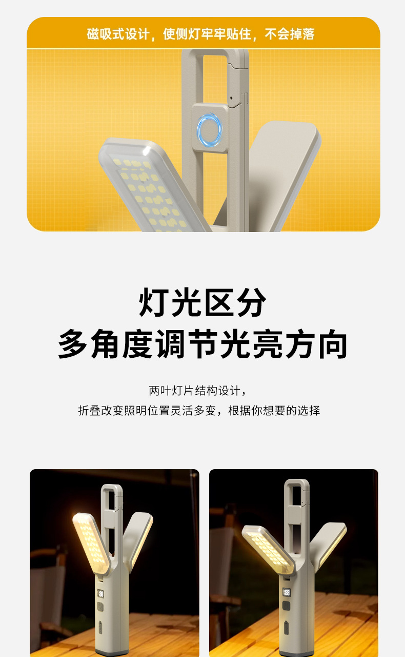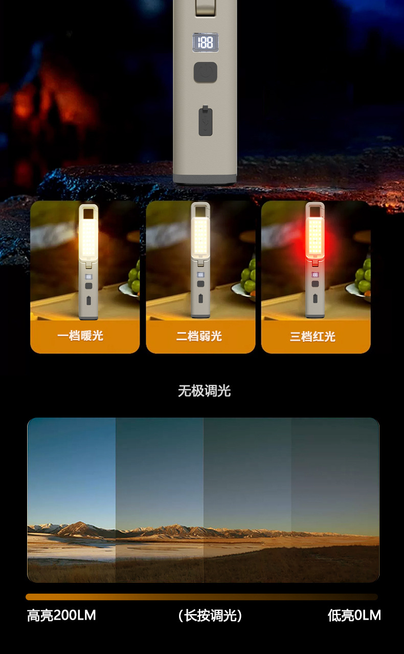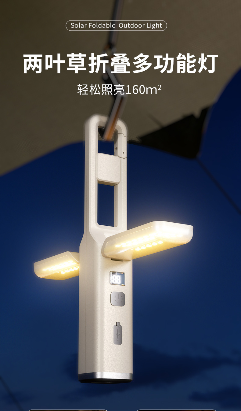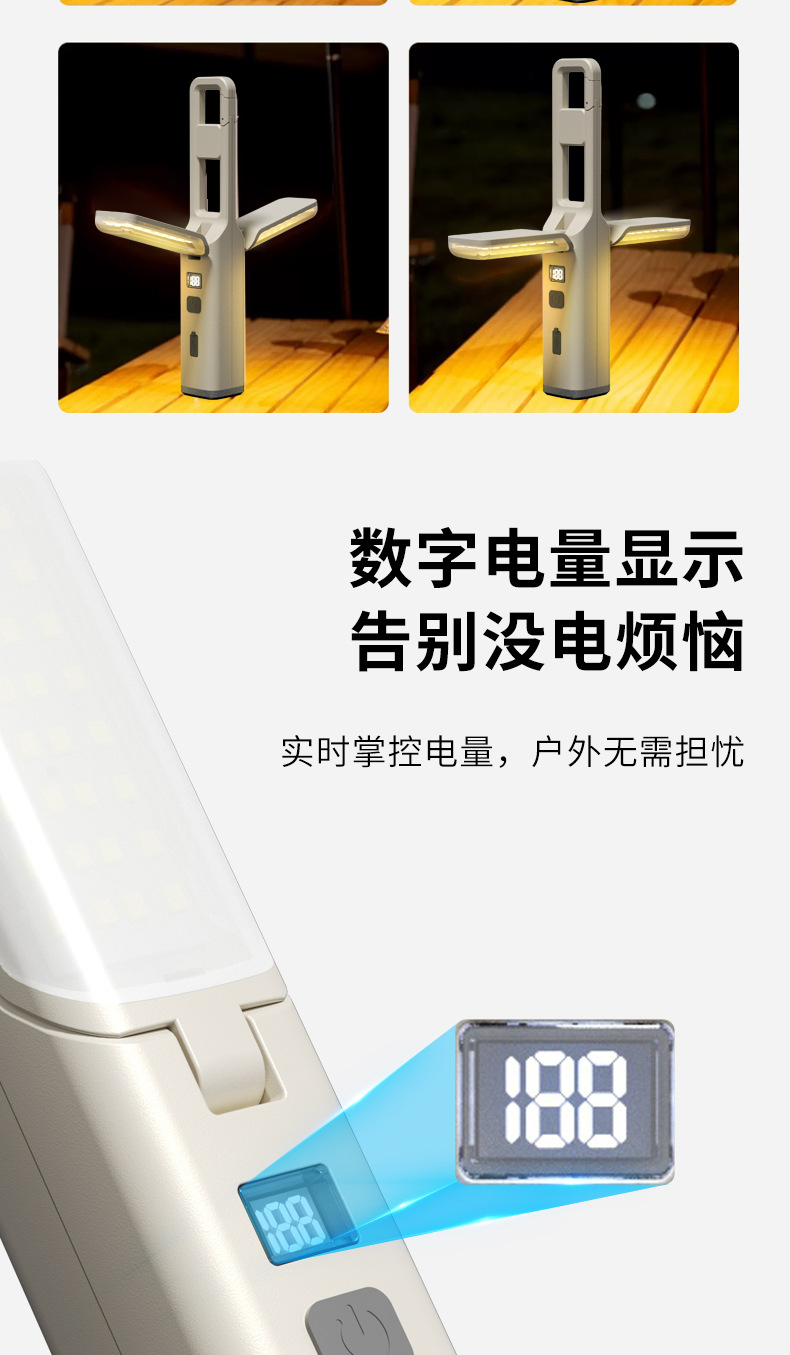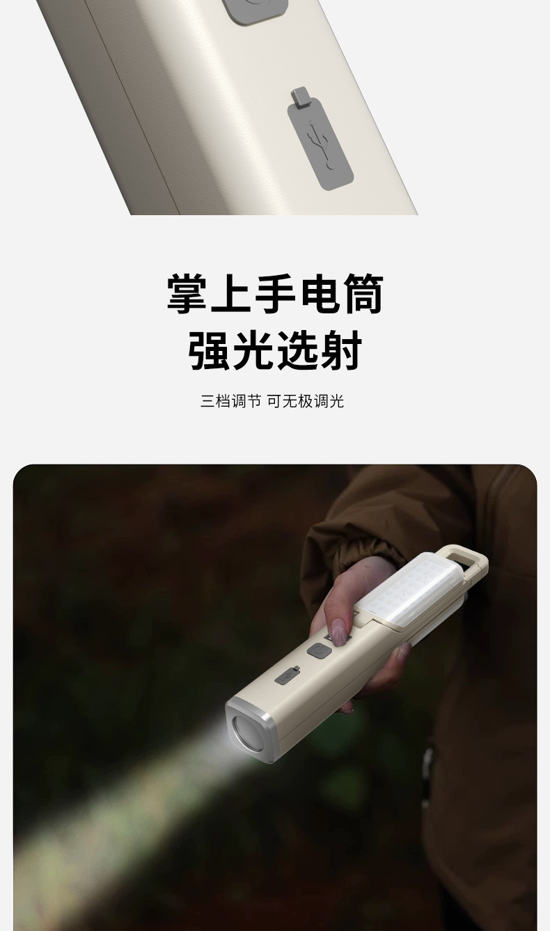 強光超亮手電筒營地戶外掛鉤小可攜式充電多功能可折疊氛圍露營燈