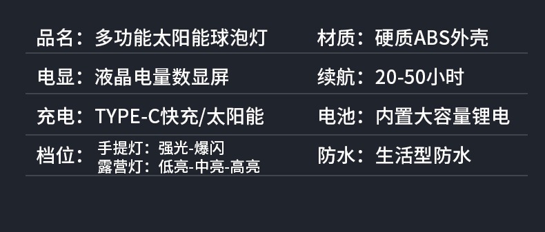 | 規格 | 球泡燈【太陽能充電+智能數顯】 |