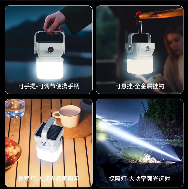 新款露營燈太陽能可充電長續航帳篷燈應急燈野營燈充電式照明燈