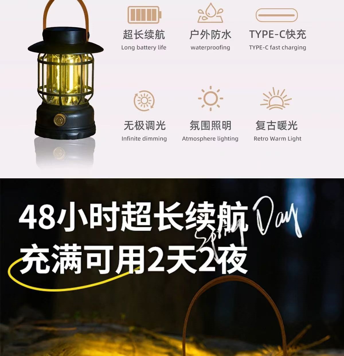 復古戶外露營續航提燈充電照明超長營地野營可充電帳篷氛圍馬燈