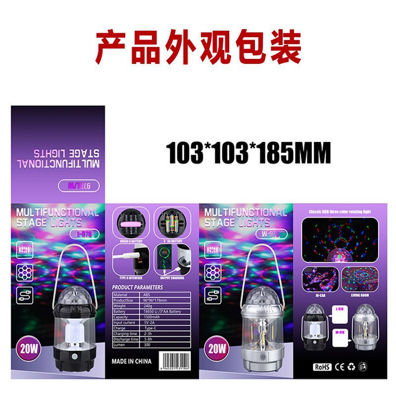 新款七彩旋轉燈可攜式手提多功能野營燈廣場舞台燈室內氛圍燈