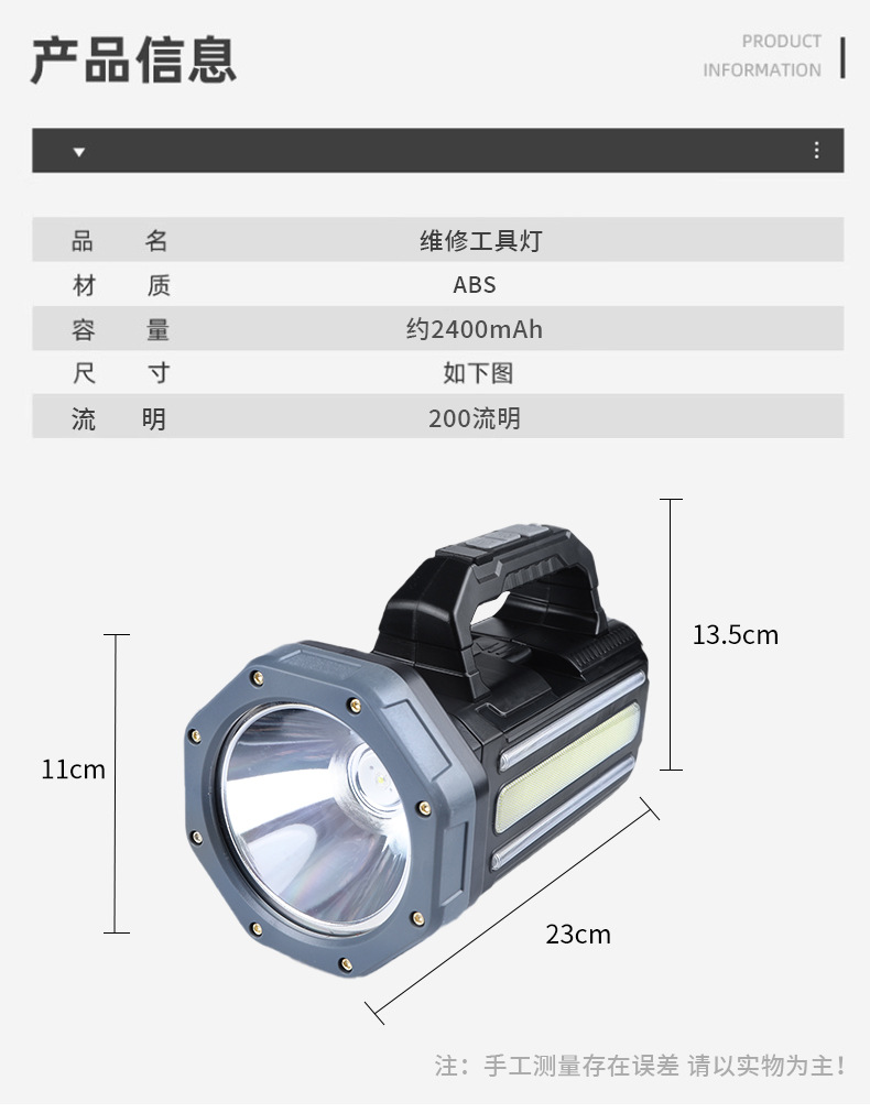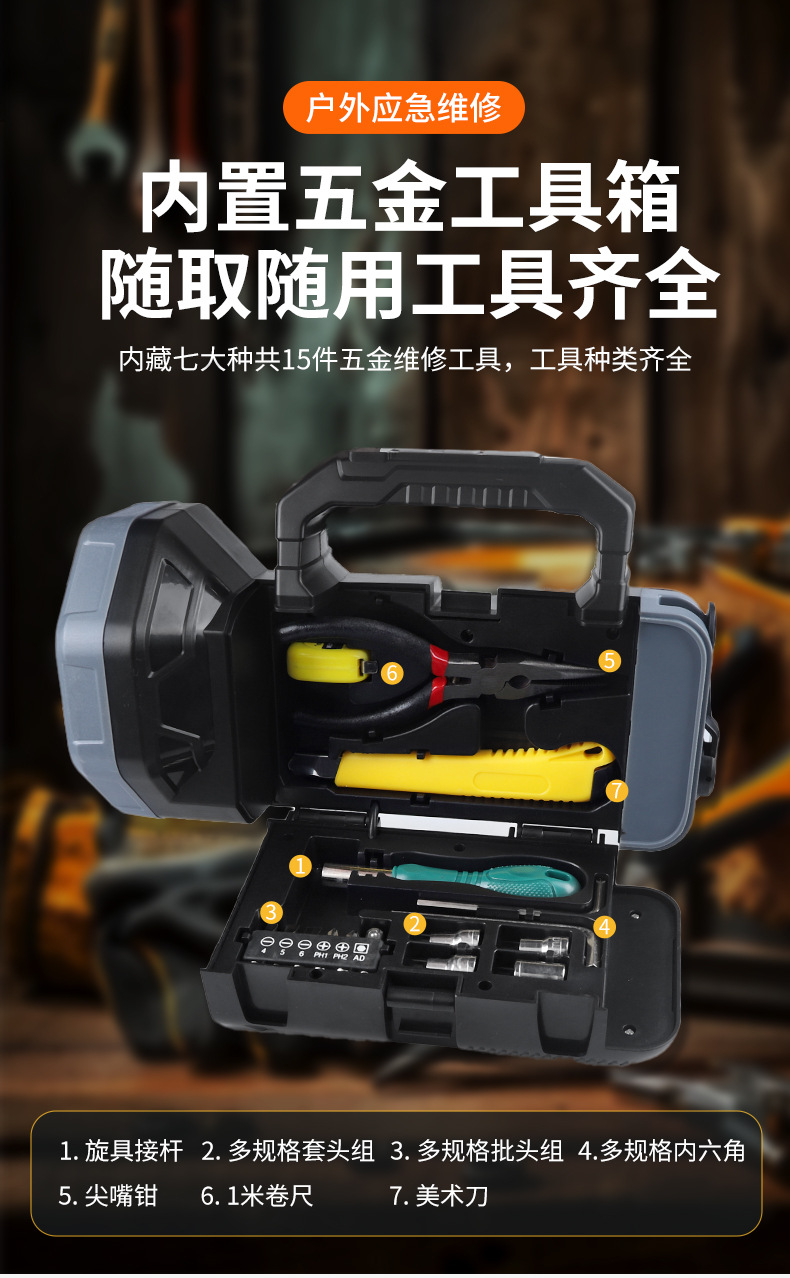 多功能工具箱防爆探照燈大功率戶外充電手提式強光手提燈手電筒