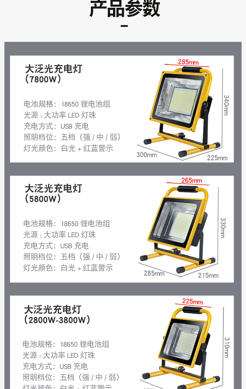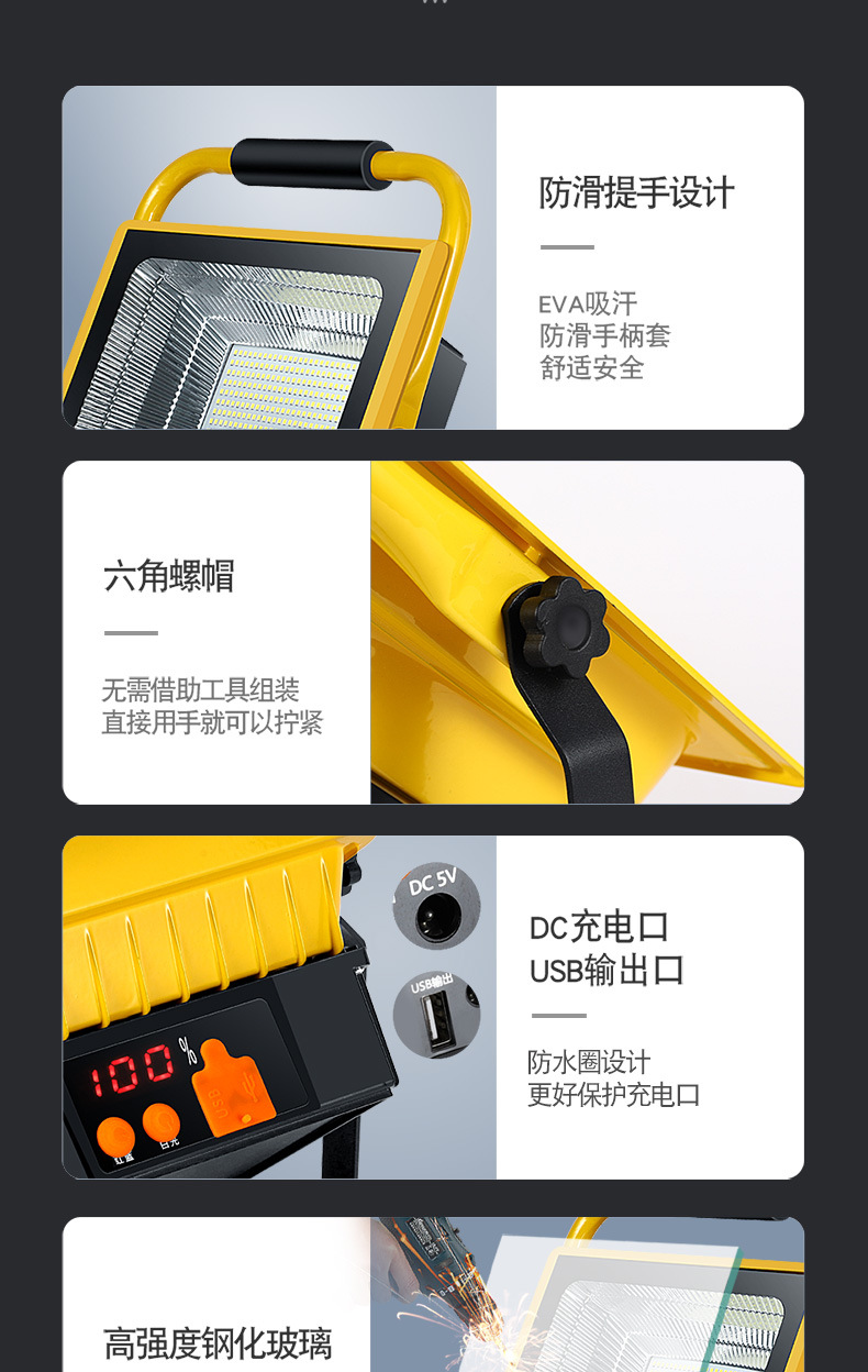 LED充電投光燈家用停電應急超亮防水工地照明燈戶外擺攤露營手提