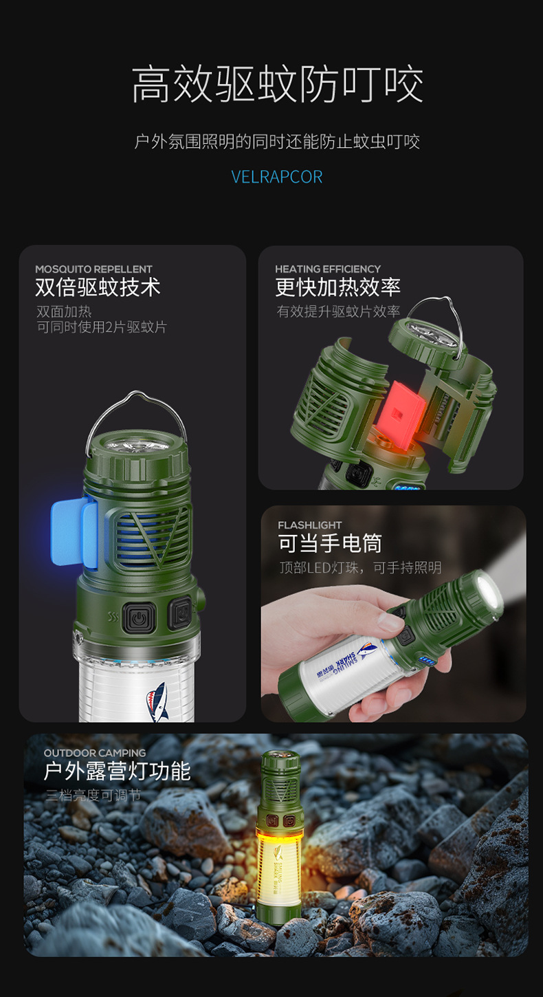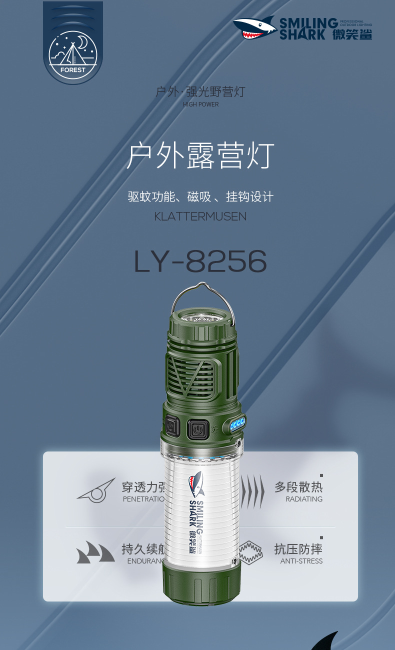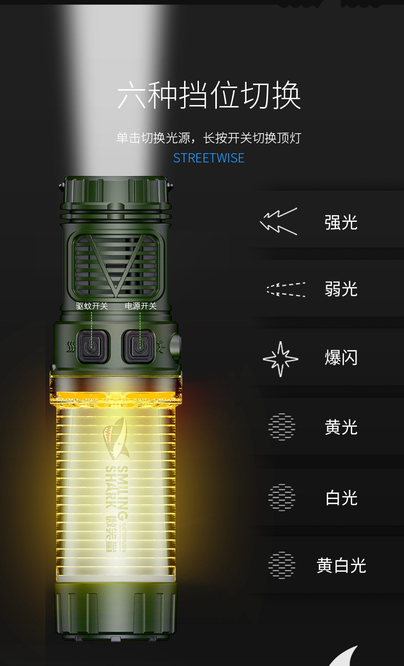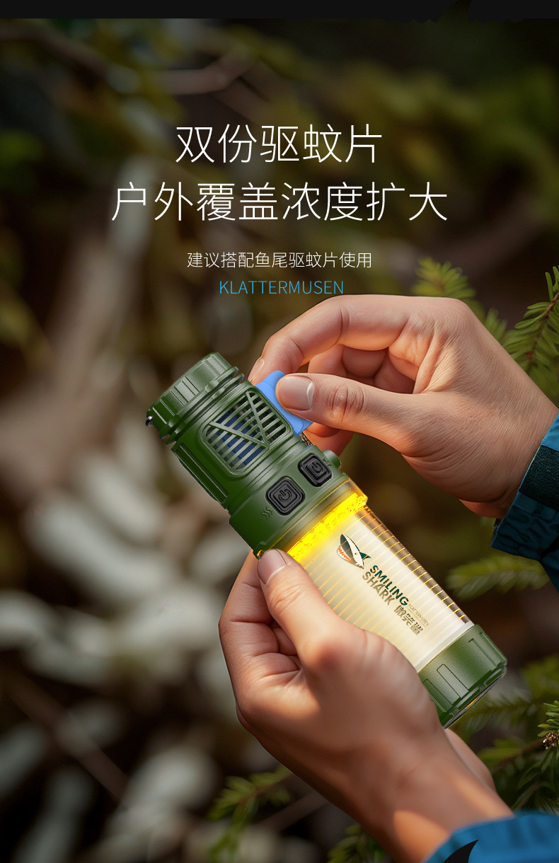 微笑鯊戶外黃白雙光多功能露營燈支架燈帶驅蚊功能可充電磁吸掛鉤