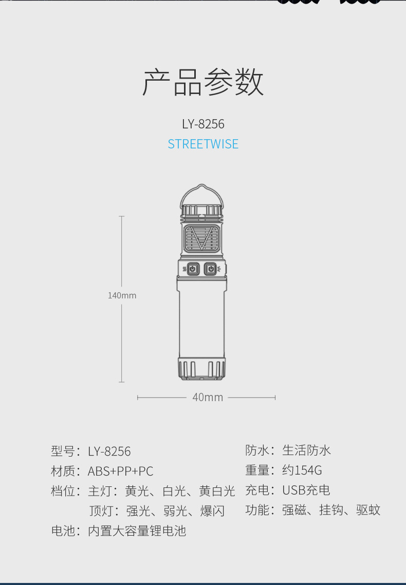 | 顔色 | LY-8256黑色-多功能露營燈【磁吸+驅蚊+掛鉤】4500MAH |