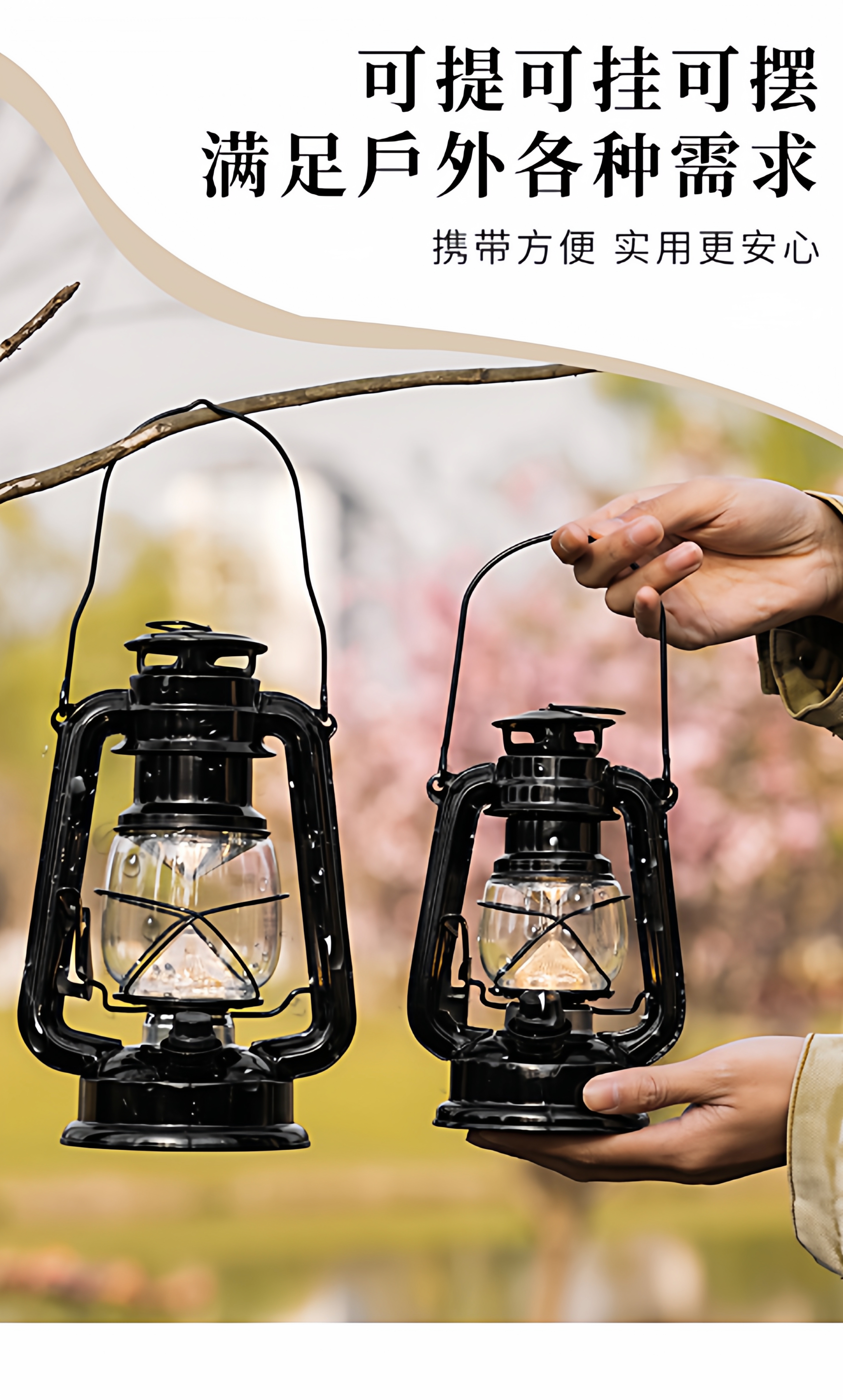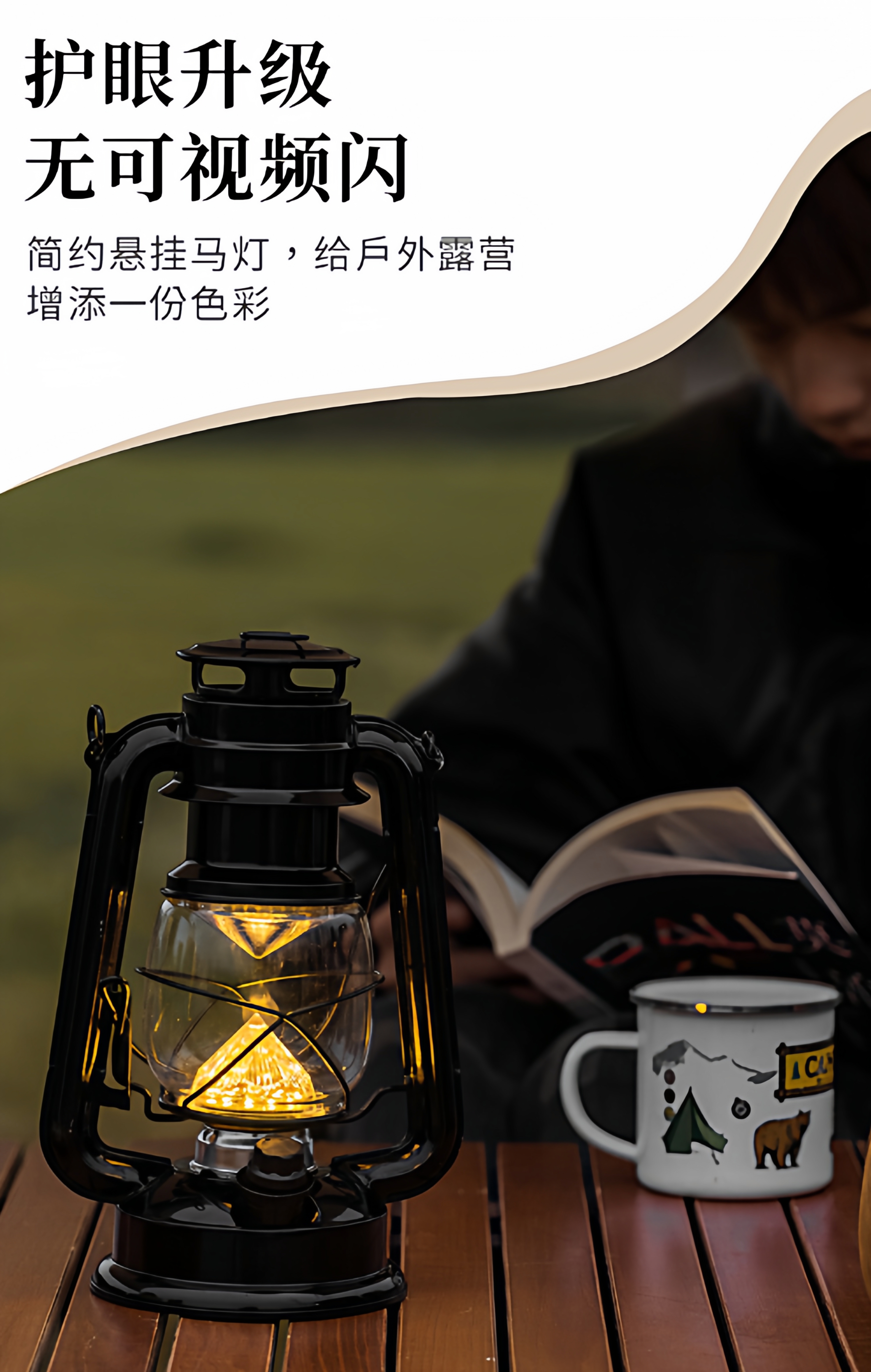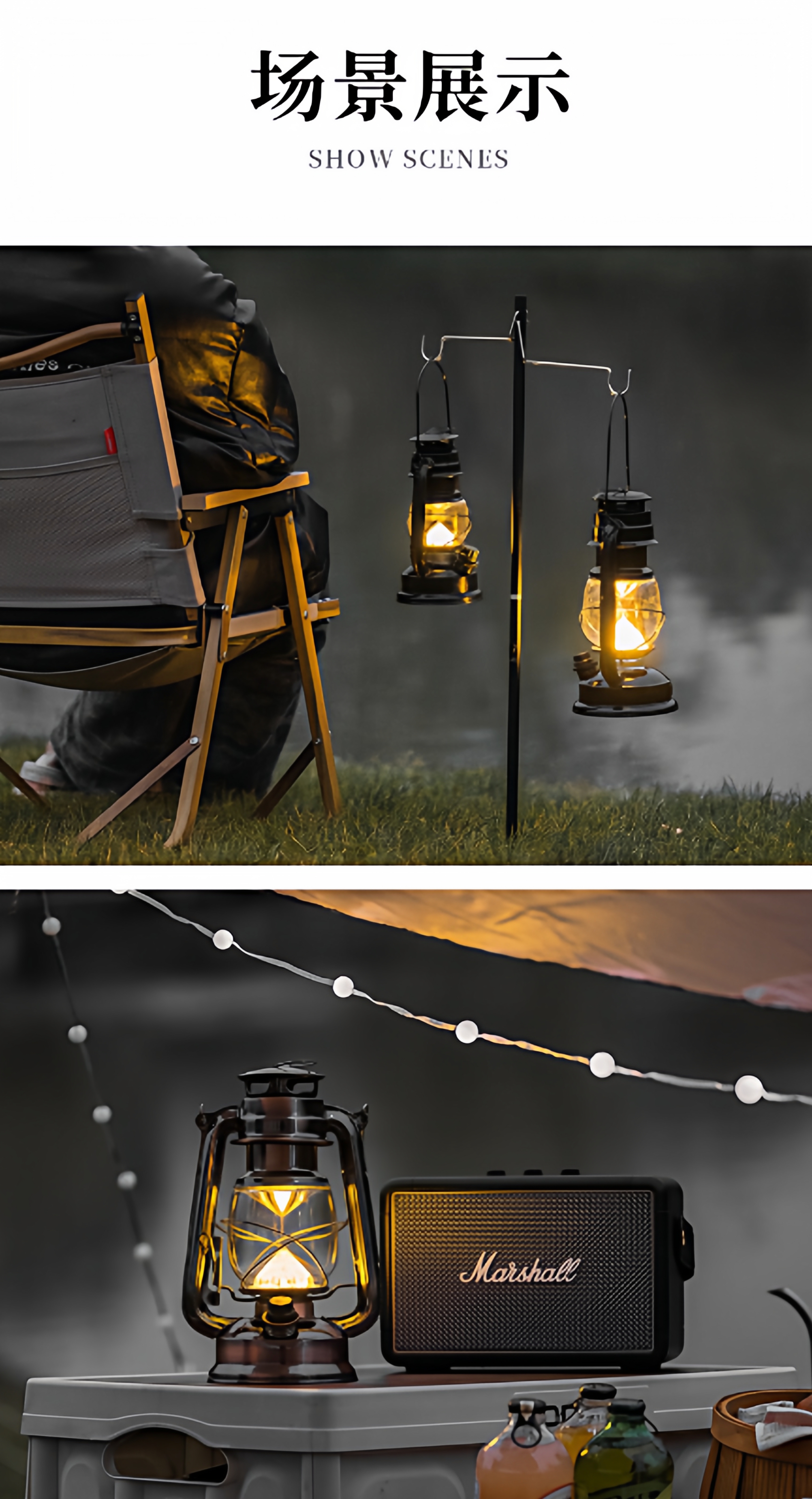 充電復古煤油馬燈露營燈超長續航戶外野營氛圍照明燈天幕帳篷掛燈