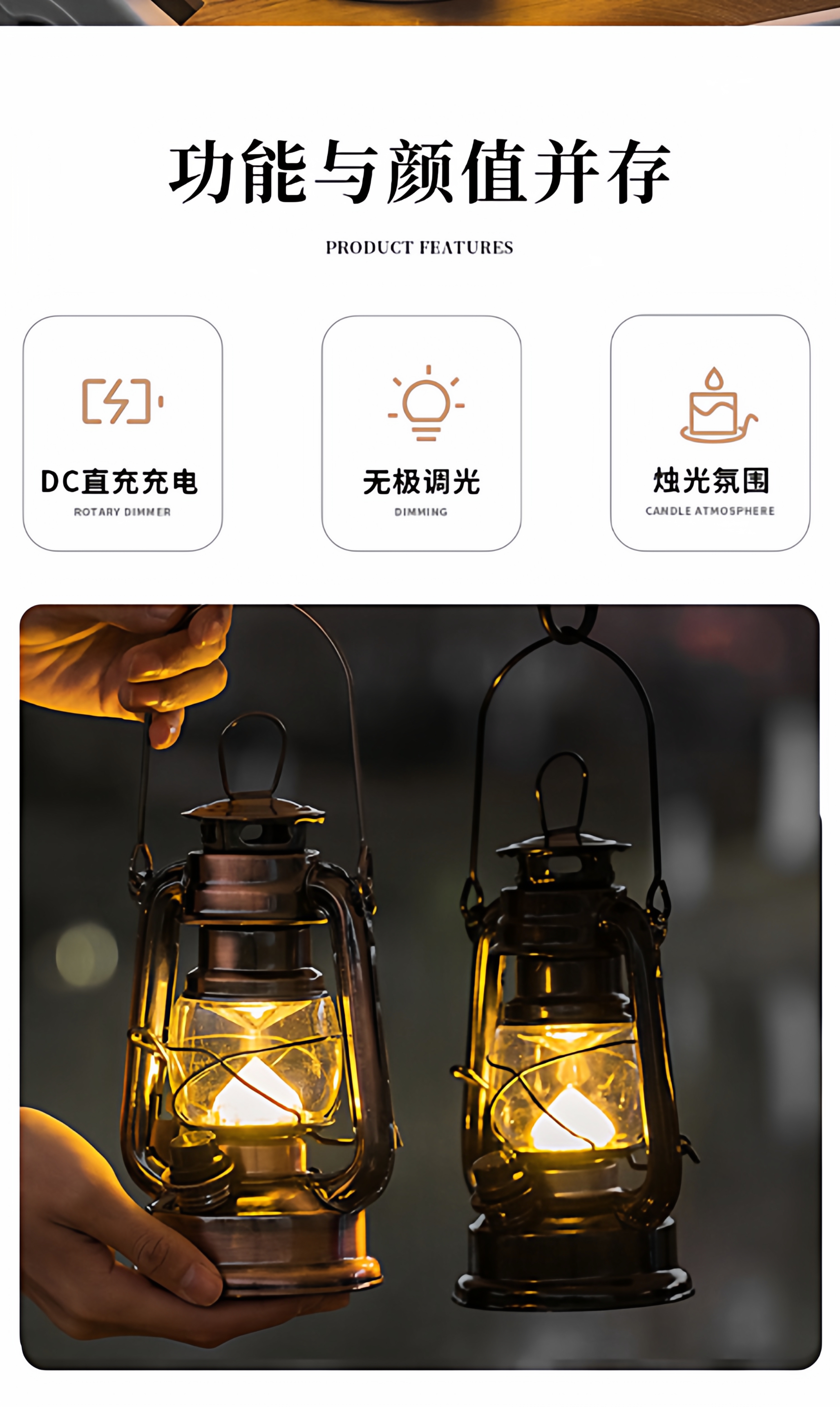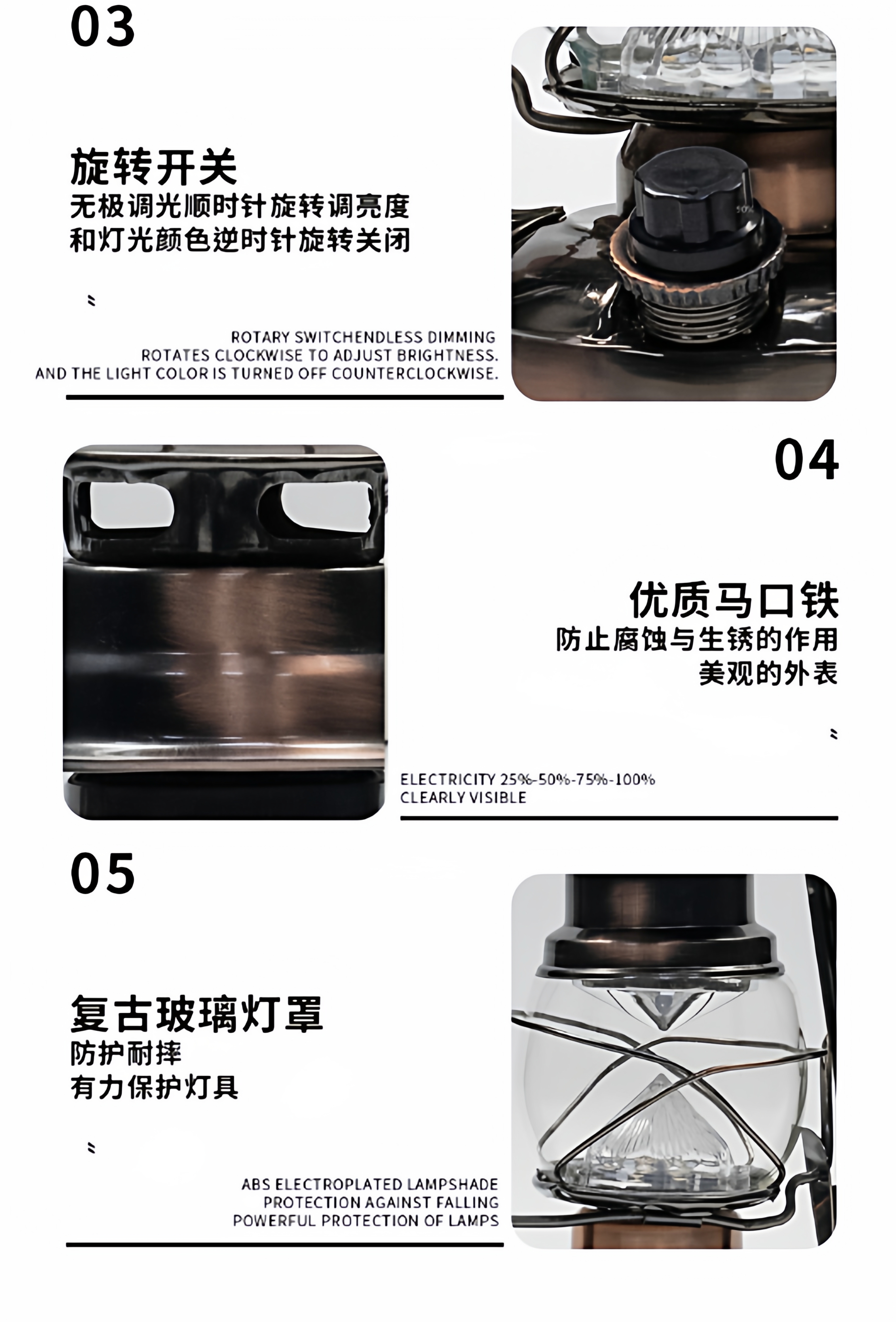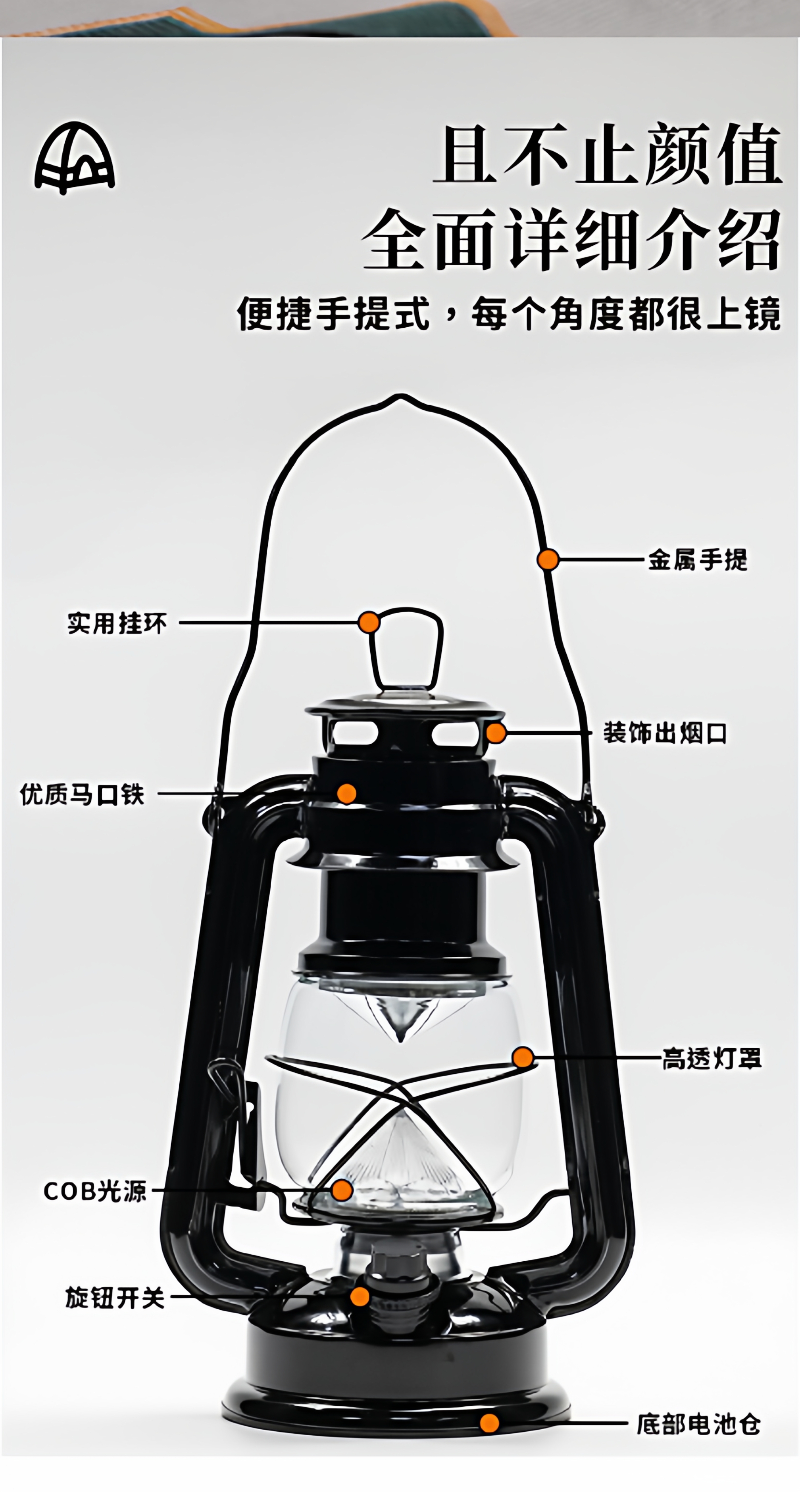 充電復古煤油馬燈露營燈超長續航戶外野營氛圍照明燈天幕帳篷掛燈
