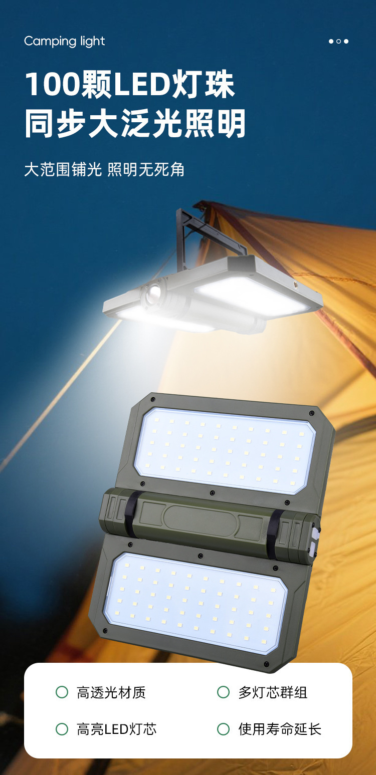 LED戶外工作燈大功率太陽能支架收納充電手提探照應急照明燈