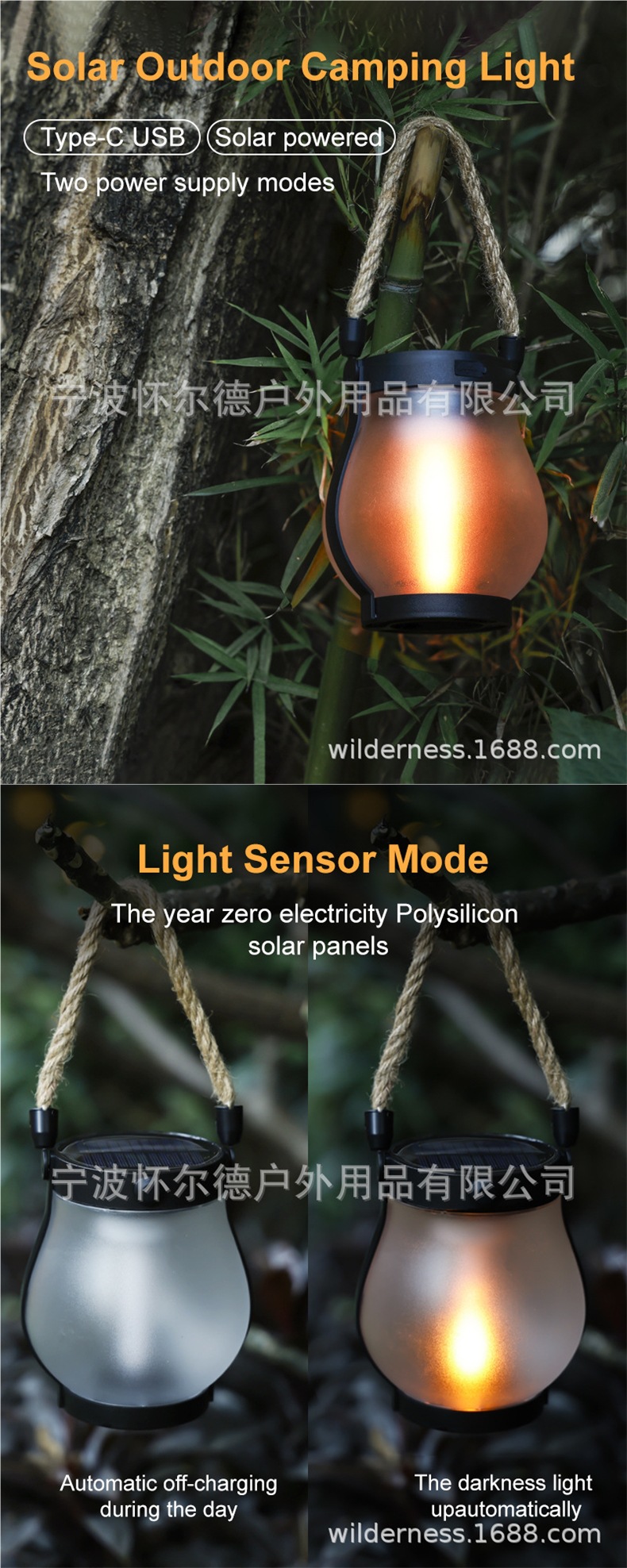 ♔新款太陽能麻繩火焰燈懸掛戶外野營燈充電庭院裝飾多功能照明燈