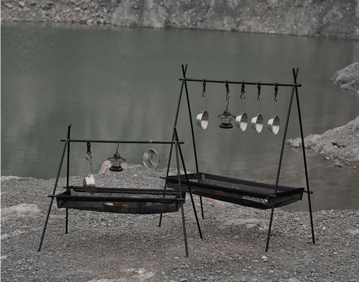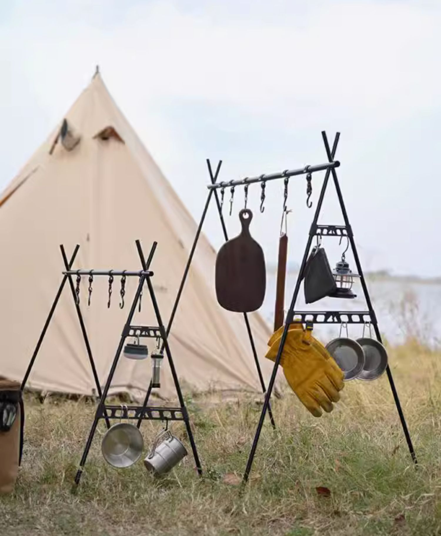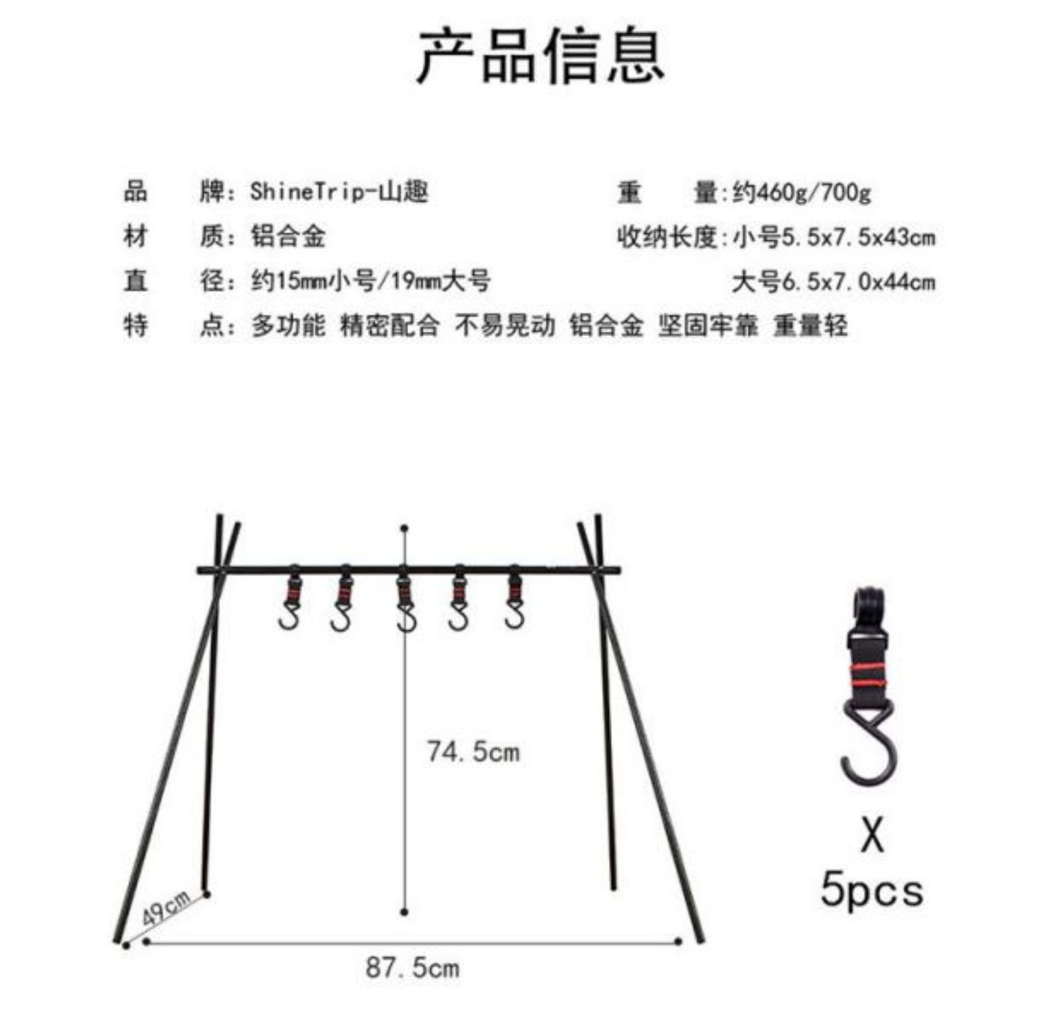 山趣戶外野營折疊可攜式露營三角置物架鍋架收納架燈架掛架支架燈桿