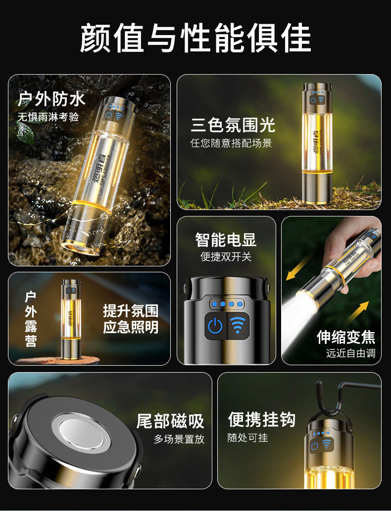 三戶外聚光氙氣燈超亮強光手電筒光源變焦特種兵遠射可攜式充電鎢絲