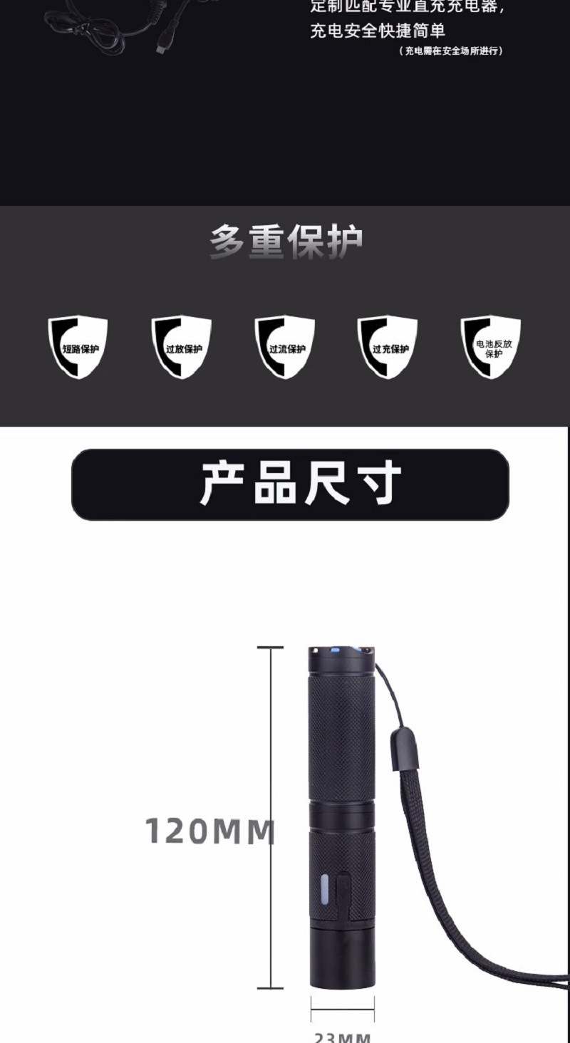 11、應急功能:燈頭採用攻擊尖端,緊急情況時可用於擊碎玻璃逃生用,具有防滾動功能。