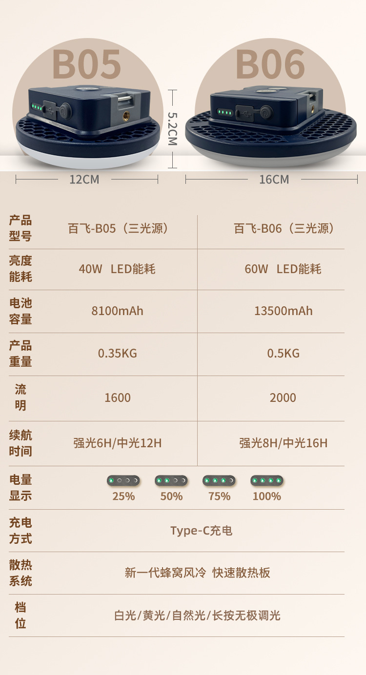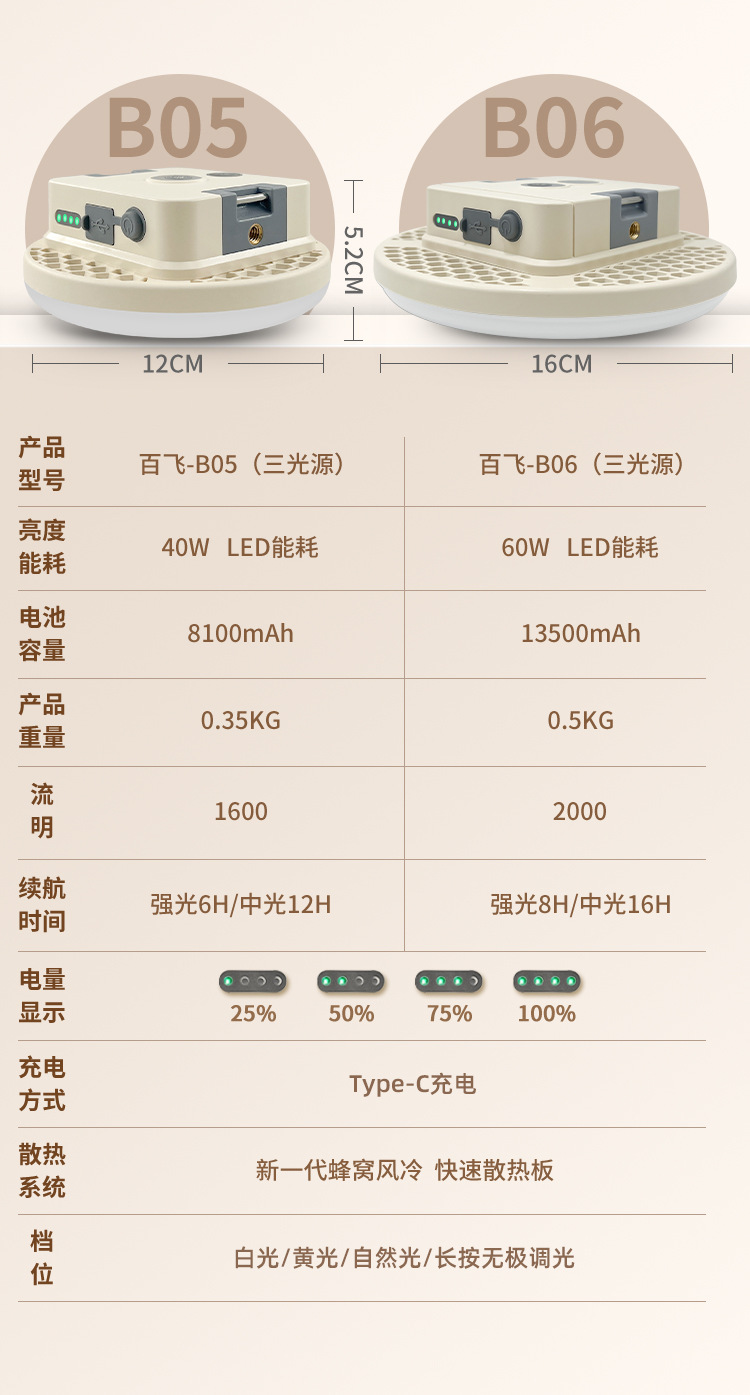 百飛B06戶外燈照明露營燈手提掛吊燈超長續航充電氛圍野營帳篷燈
