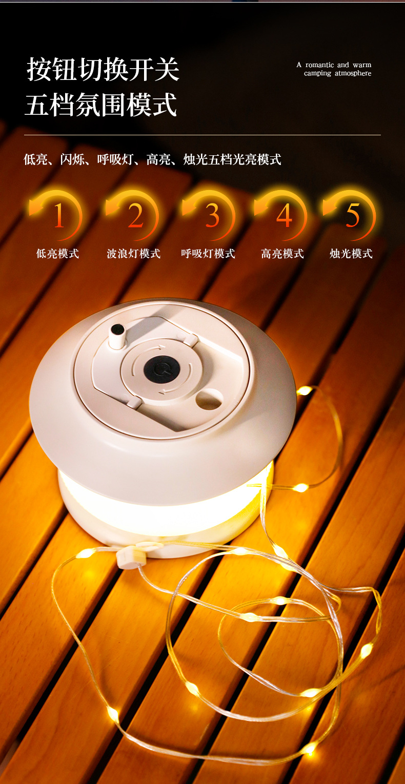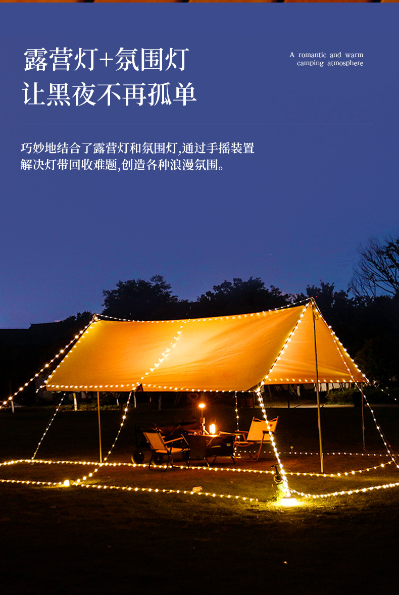 戶外露營燈串卷尺燈帶野營氣氛圍照明帳篷充電長續航風繩掛燈營繩