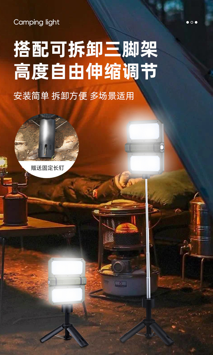 新款伸縮LED露營燈USB充電戶外野營帳篷燈泛光磁吸工作照明燈