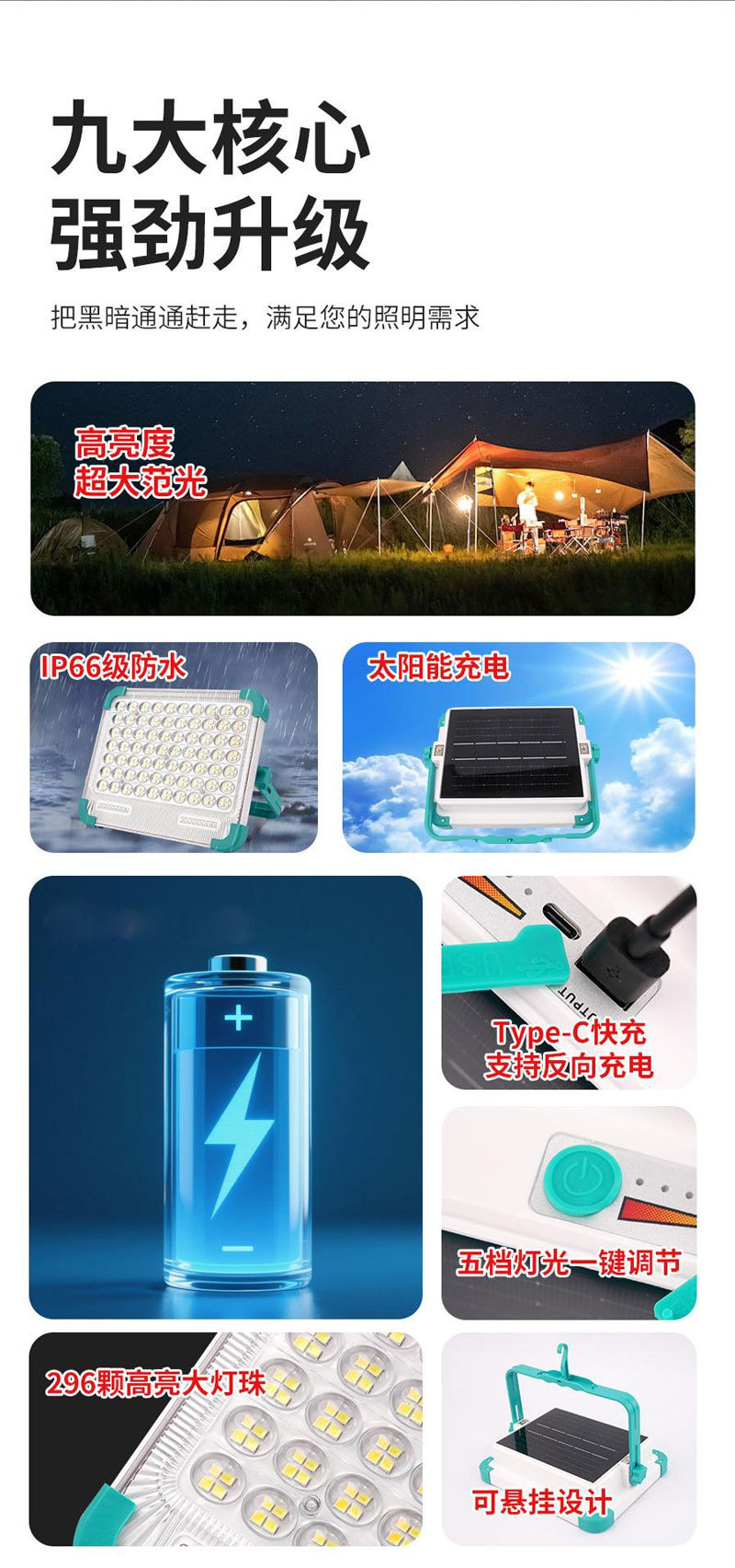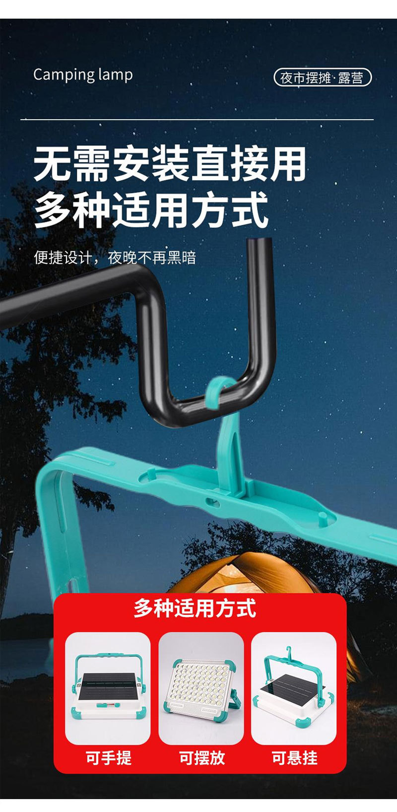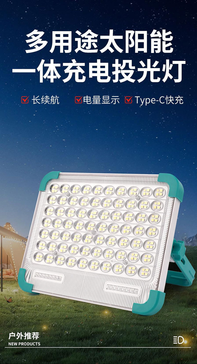 太陽能手提燈充電投光燈超亮家用夜市地攤燈戶外多功能露營燈
