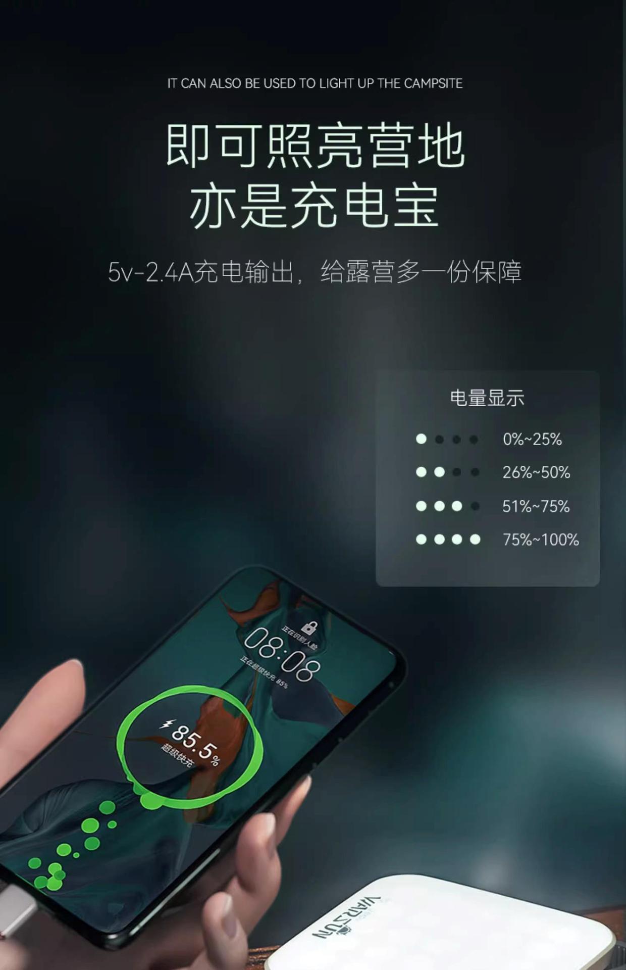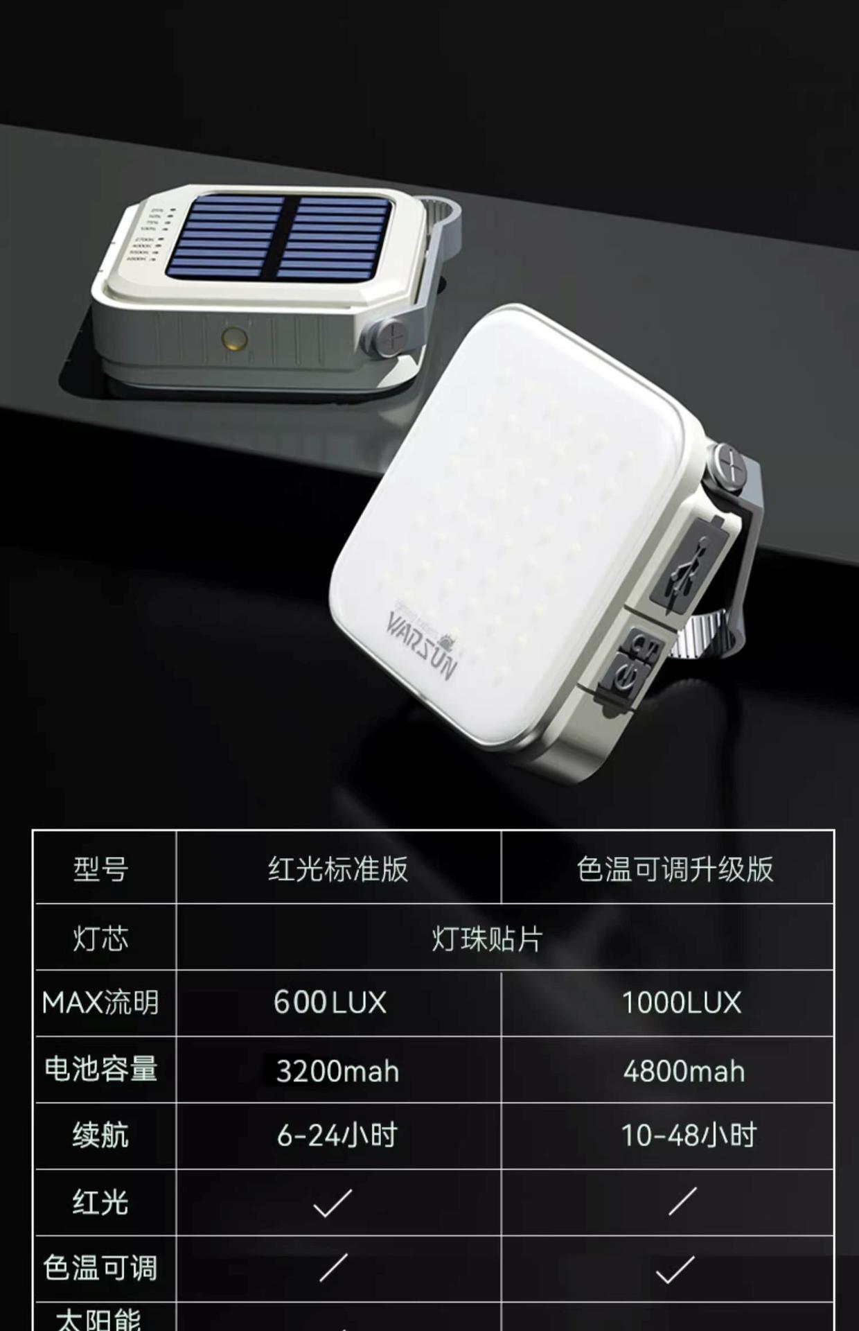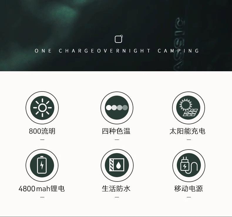 戶外多功能露營燈應急超亮長續航充電太陽能掛鉤野營燈帳篷燈