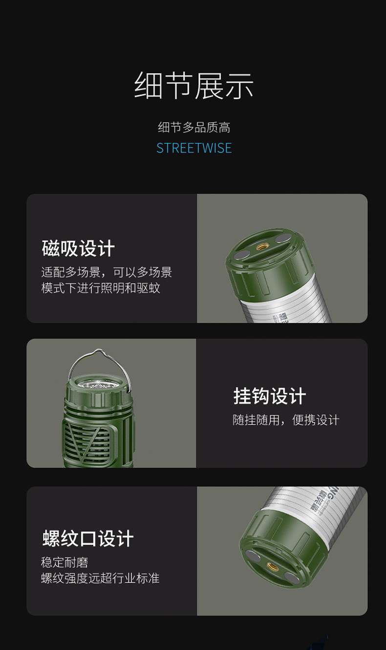 | 顔色 | LY-8256黑色-多功能露營燈【磁吸+驅蚊+掛鉤】4500MAH |