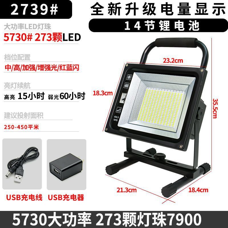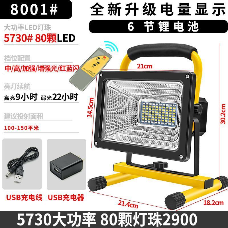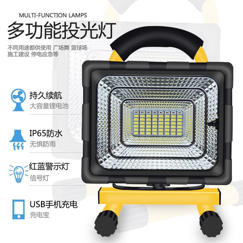 LED充電投光燈戶外照明防水廣場高亮營地燈珠鋰電太陽能手提照明