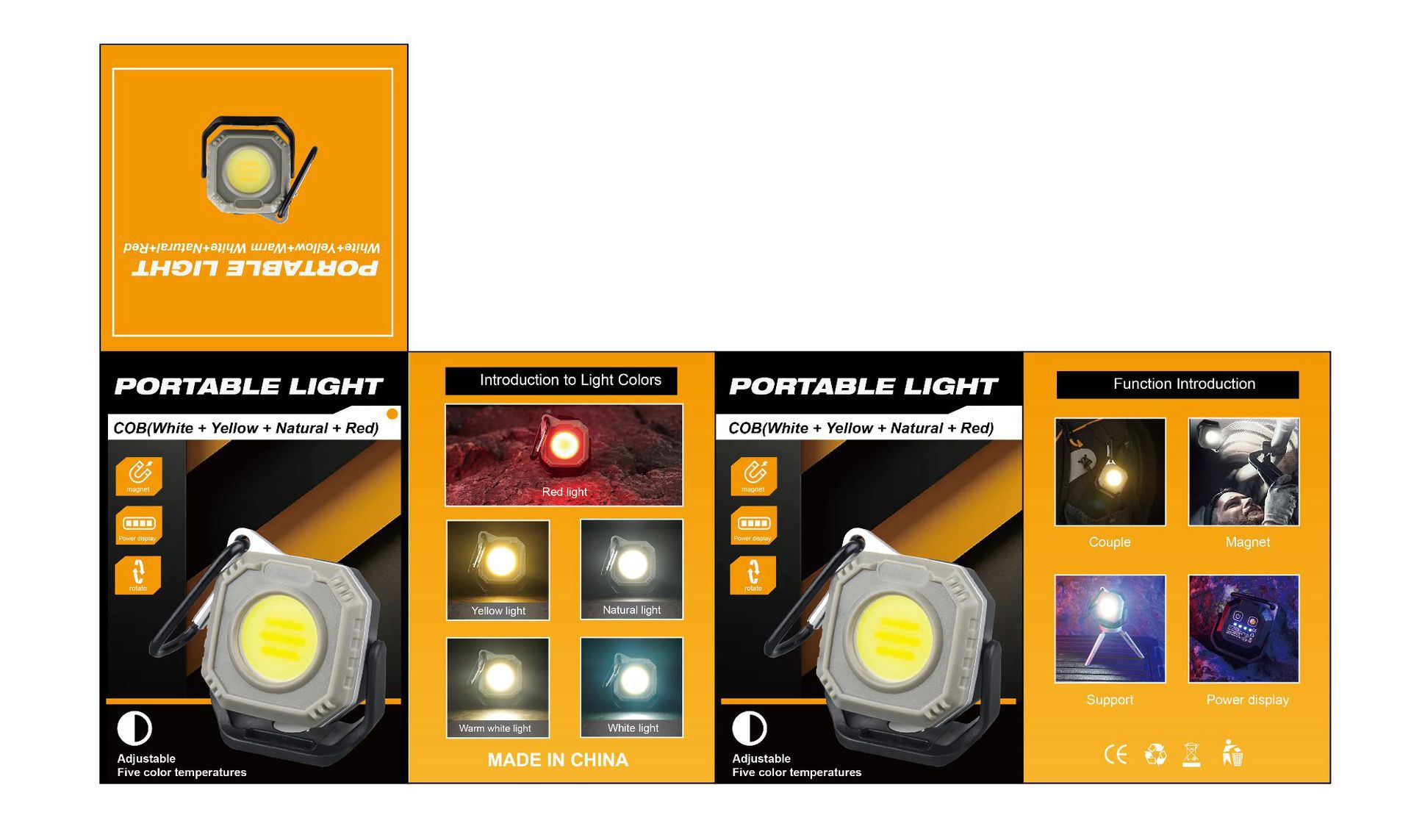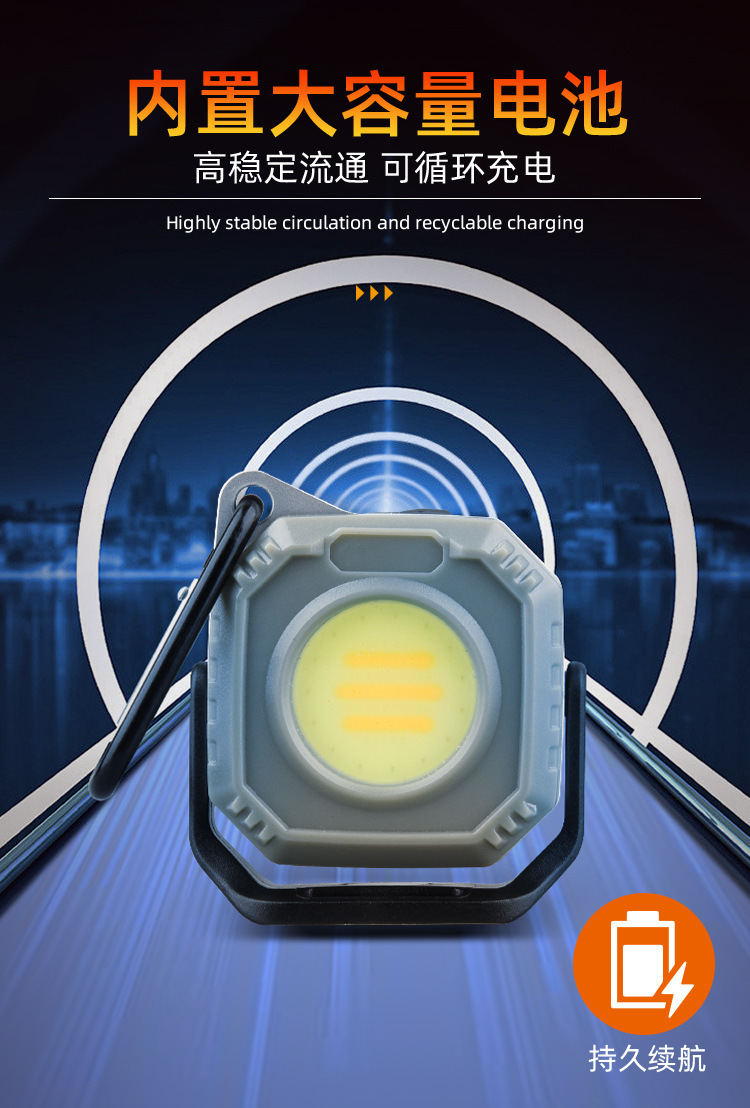新款太陽能工作燈Type-C充電帶掛鉤支架露營多功能投光工作燈