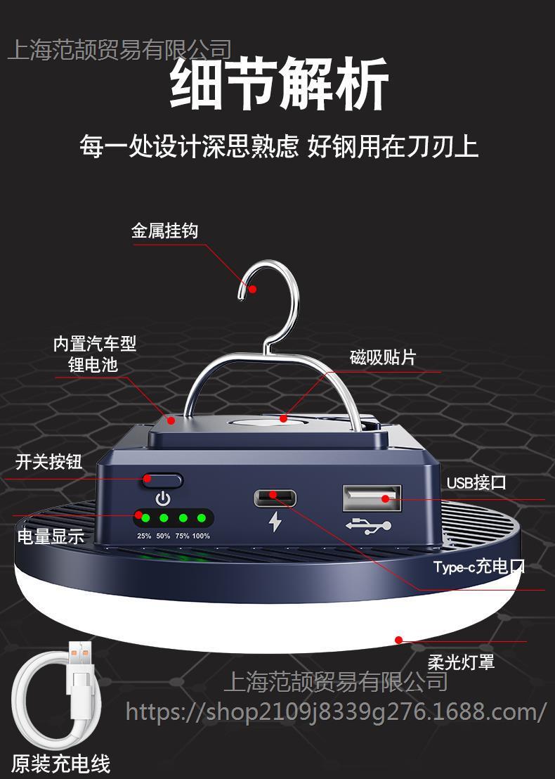 露營燈超長續航超亮野營帳篷營地停電應急天幕主燈戶外充電照明燈