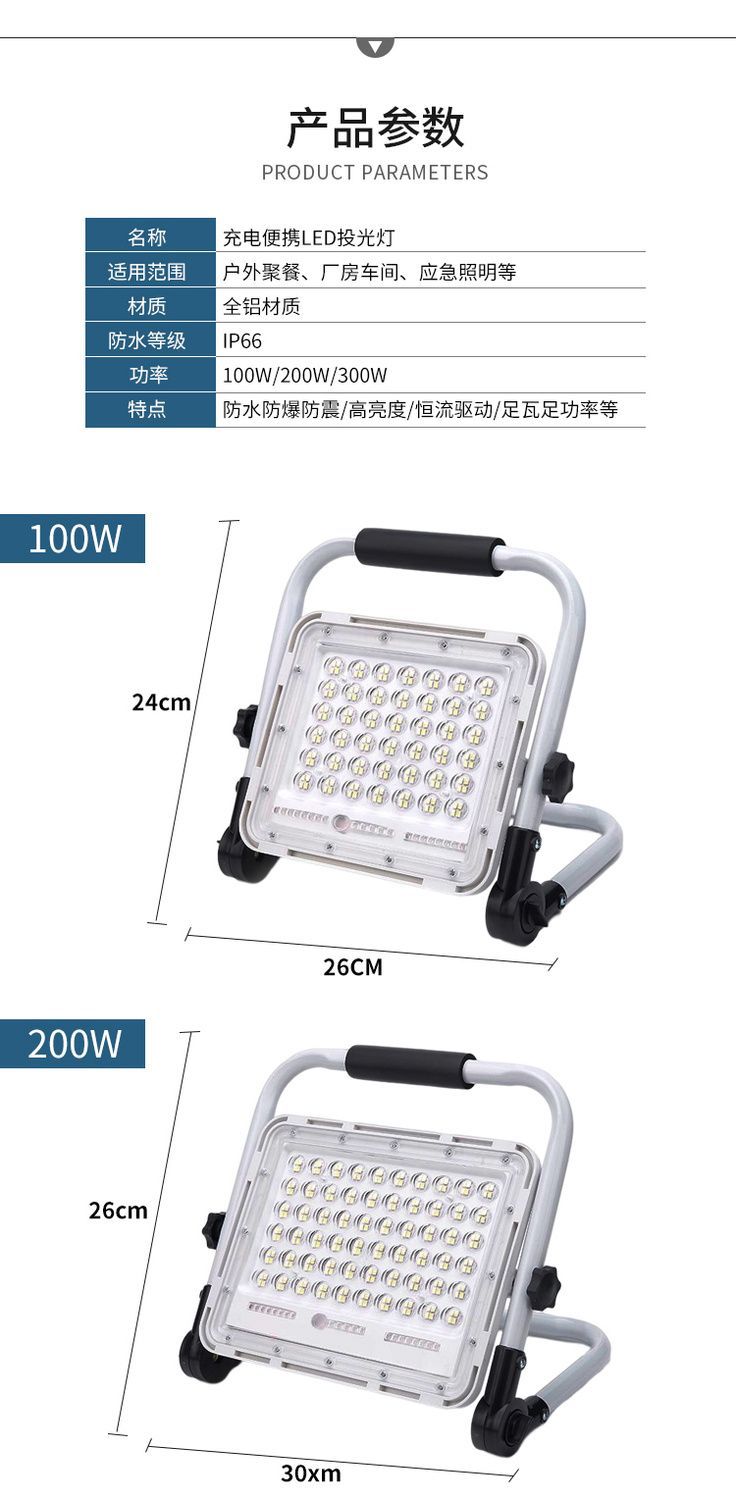 LED手提可攜式充電移動照明燈多功能充電投光燈工地照明戶外手提燈