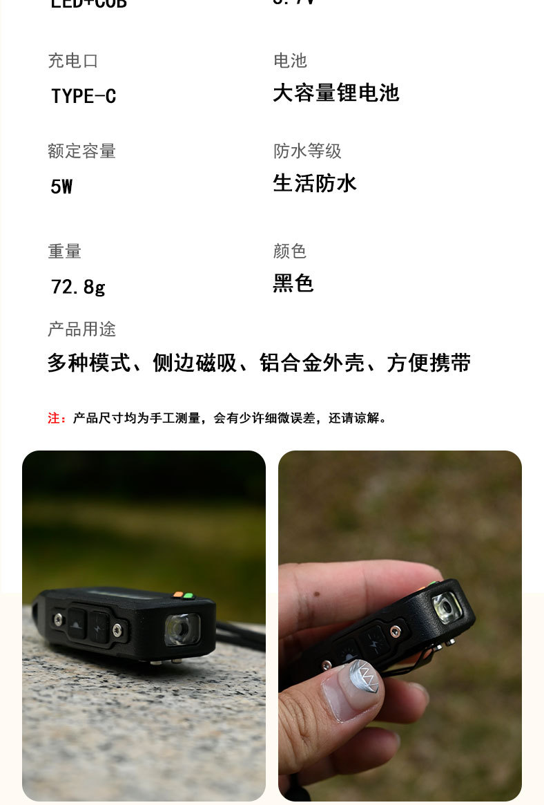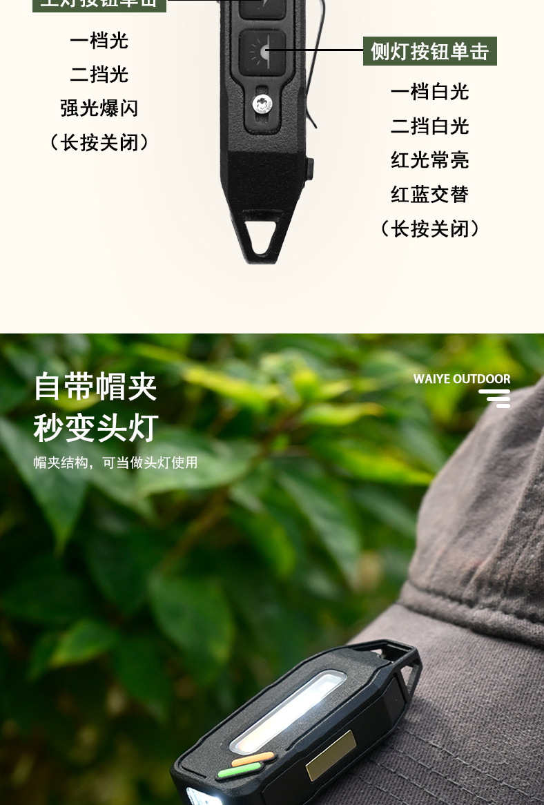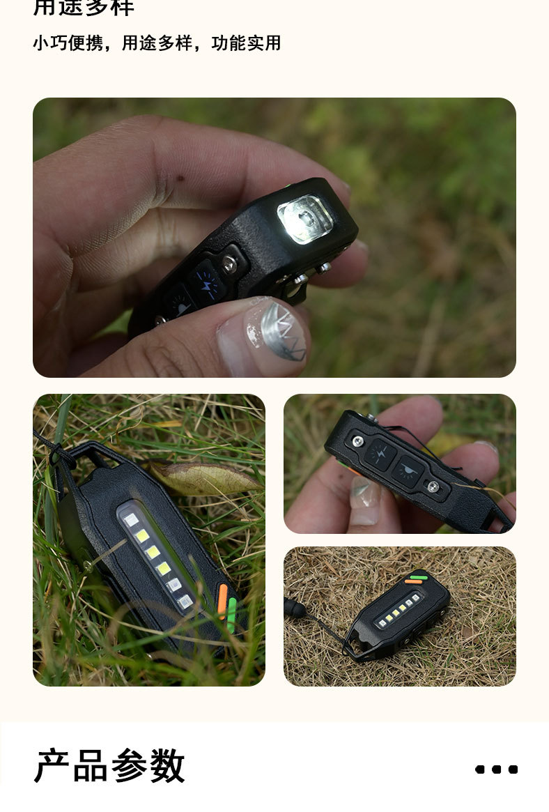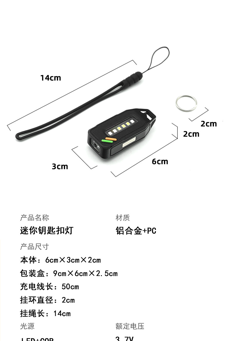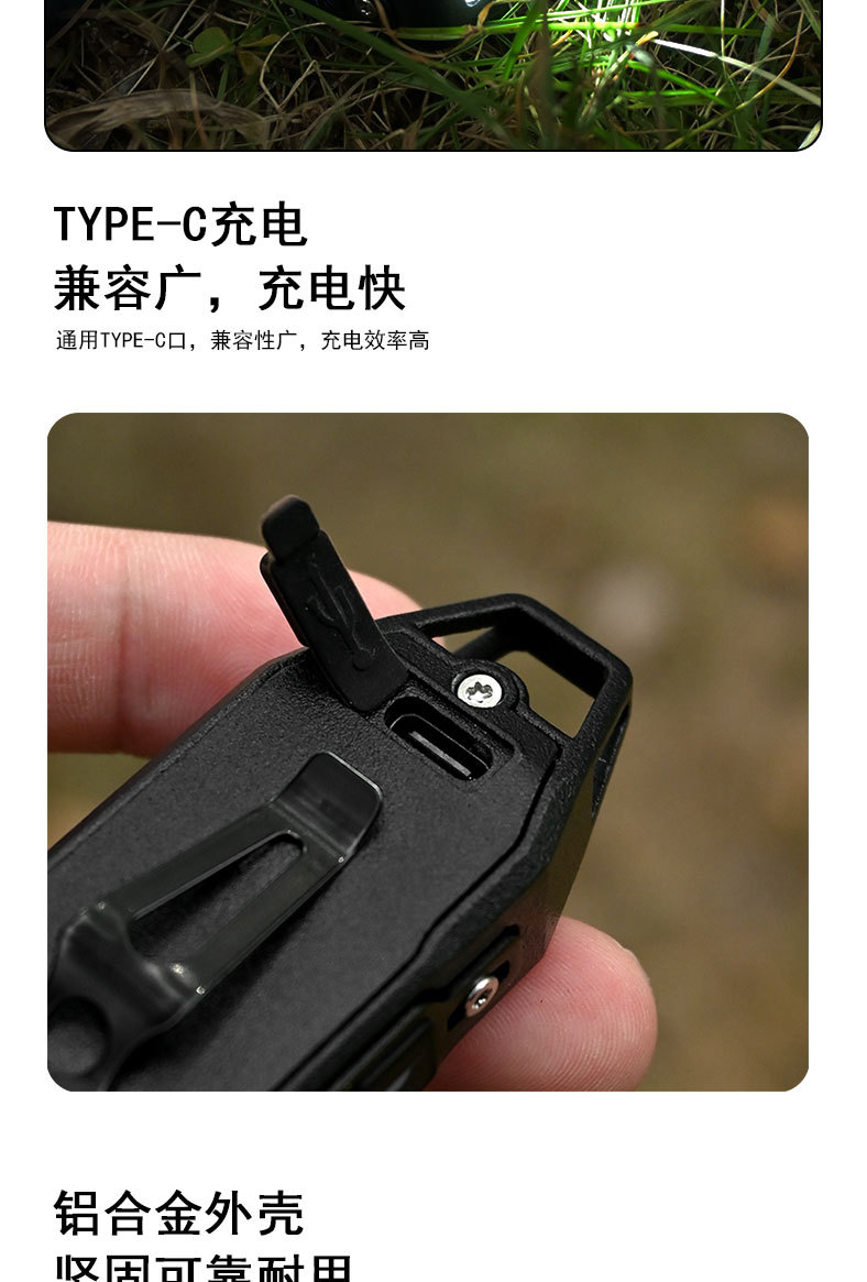 新款工作燈鑰匙釦燈USB充電戶外防潑水高亮長續航迷你手電筒