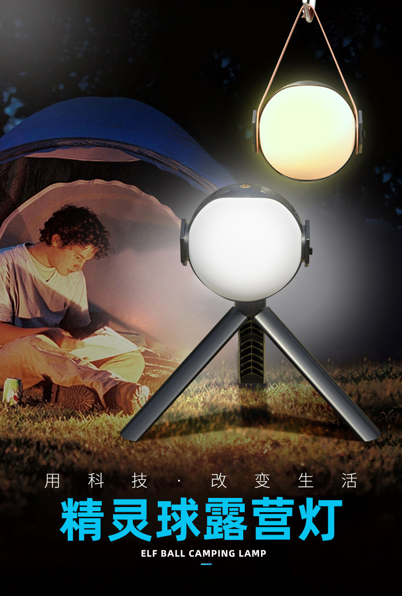 新款精靈球戶外氛圍燈露營帳篷燈可攜式快充LED球泡長續航未來之光