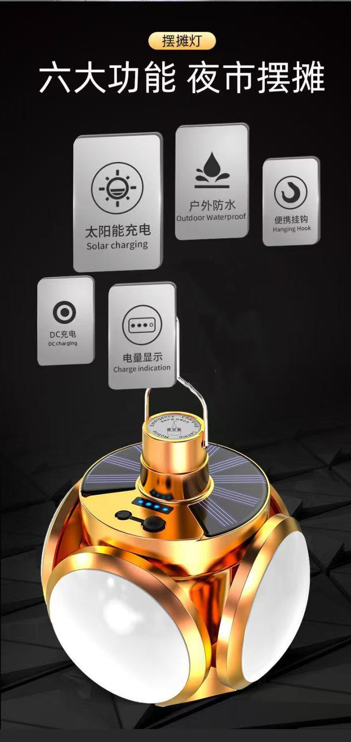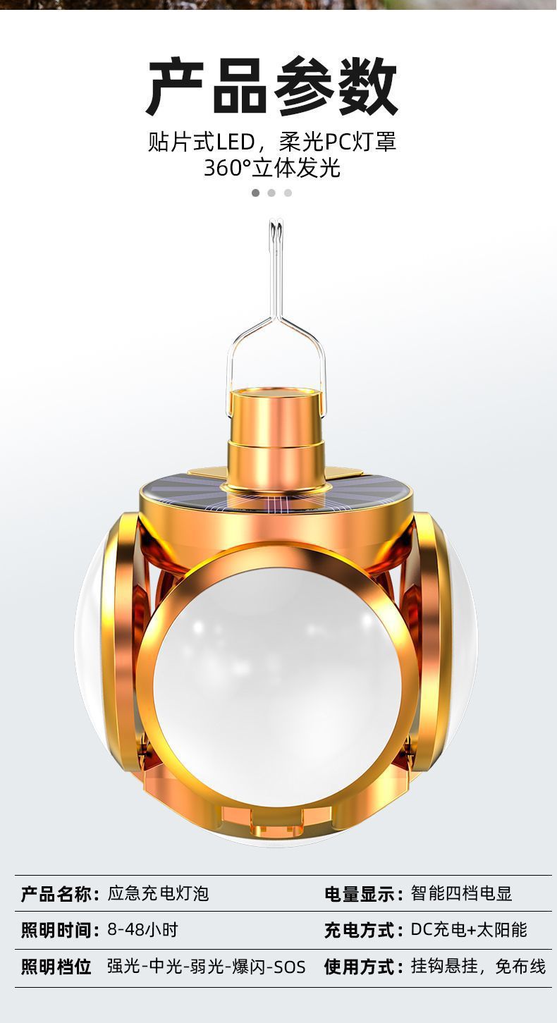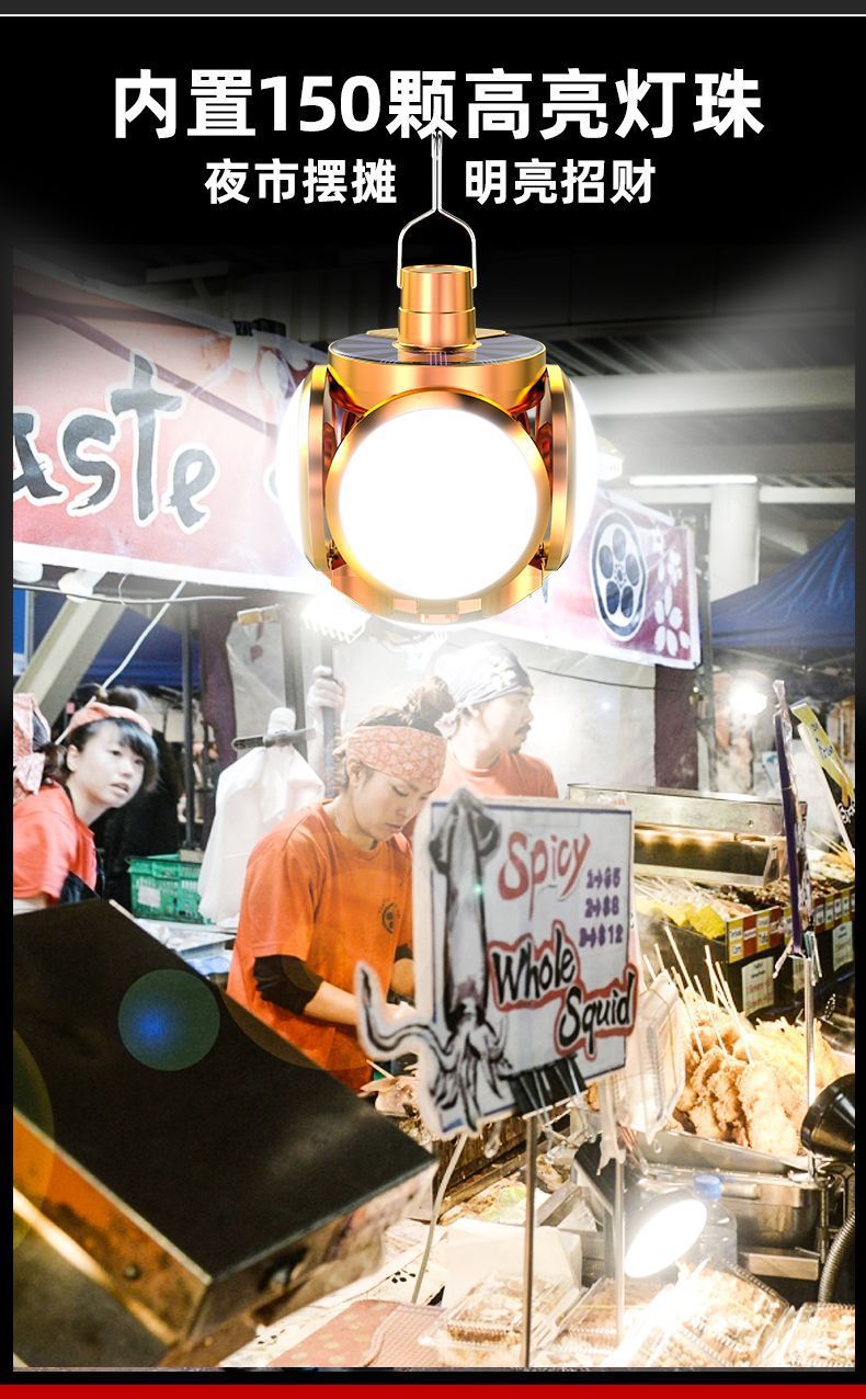 可折疊太陽能充電燈泡停電應急夜市擺攤家用LED超亮節能足球燈