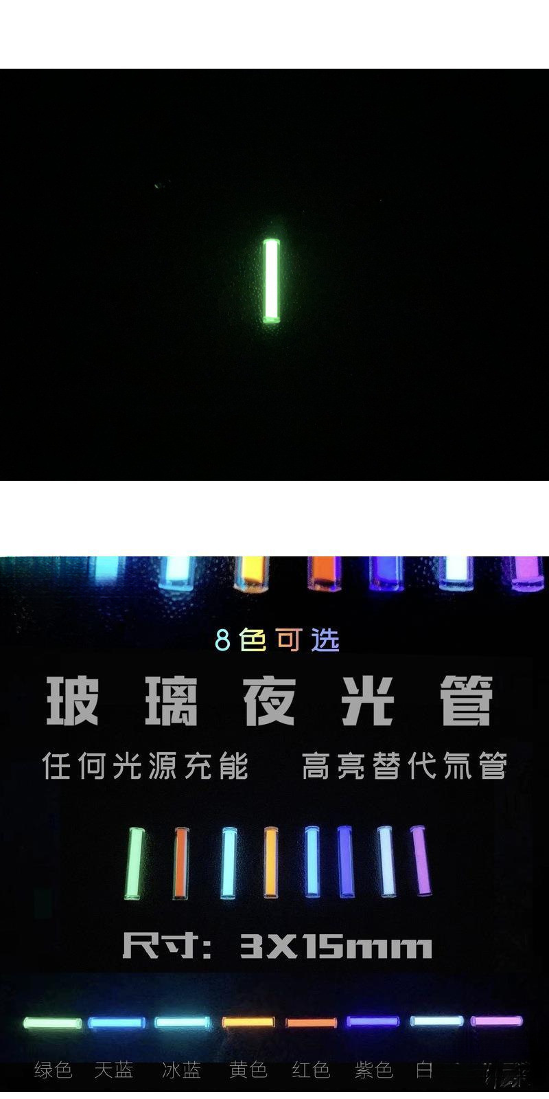 玻璃夜光琯代替氚氣琯類似自發光指尖陀螺戶外刀吊墜