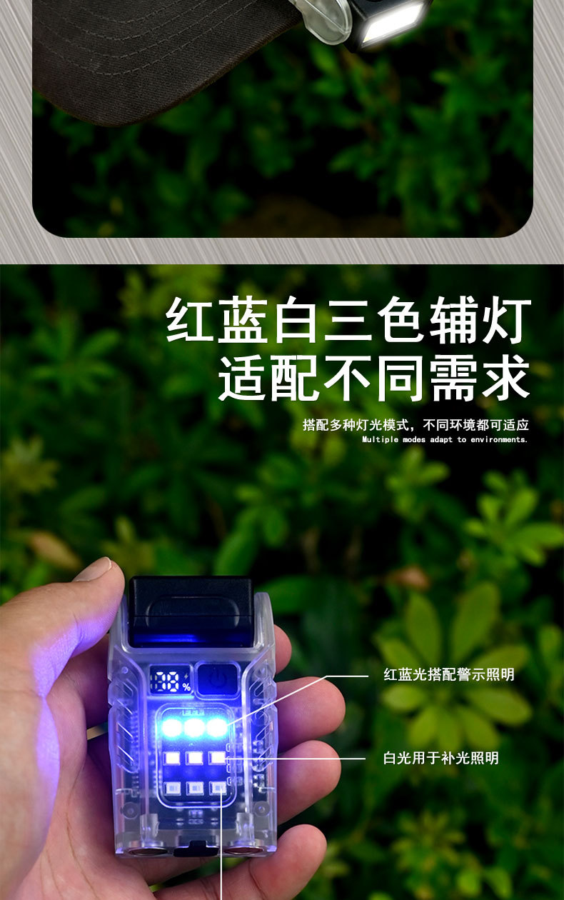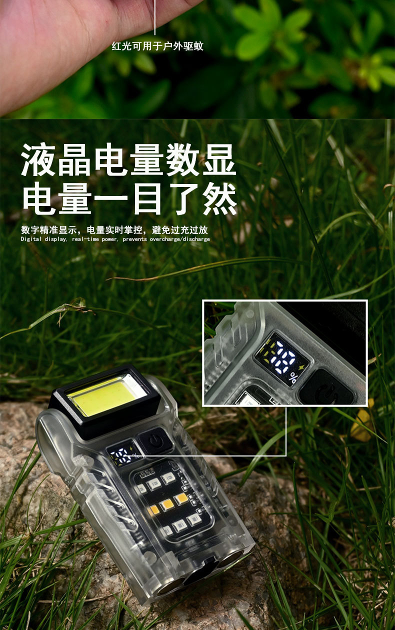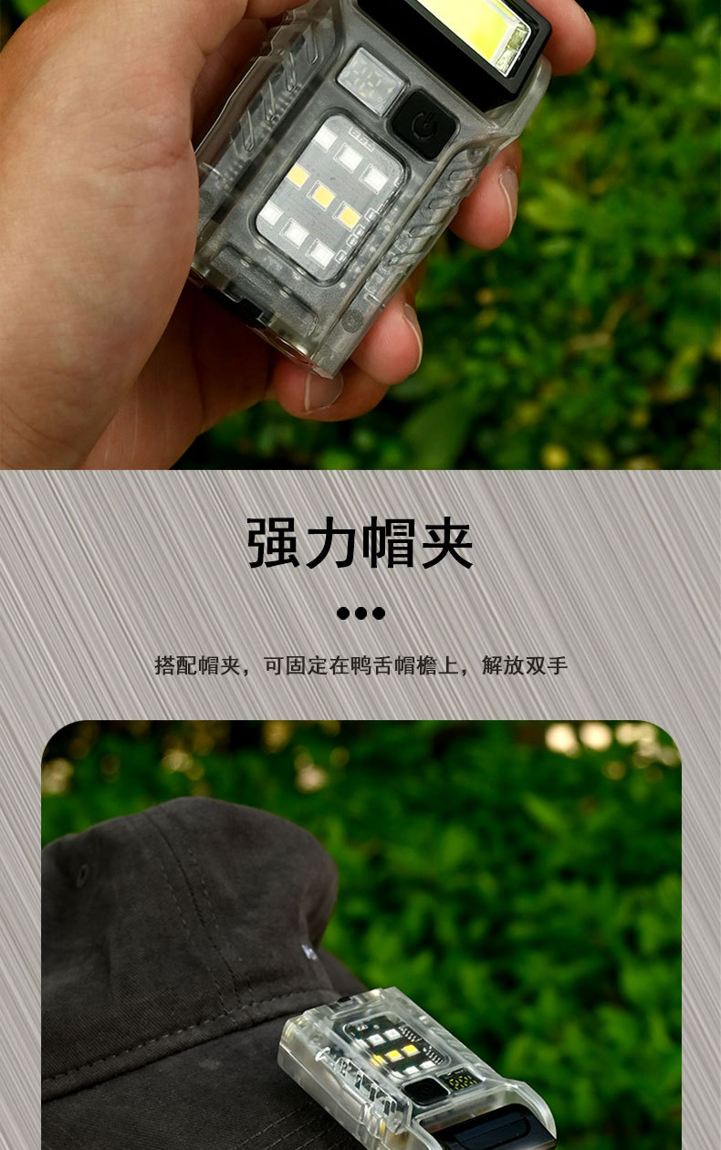 戶外可攜式多功能夜光cob工作燈led迷你手電筒強光爆亮長續航夾帽燈