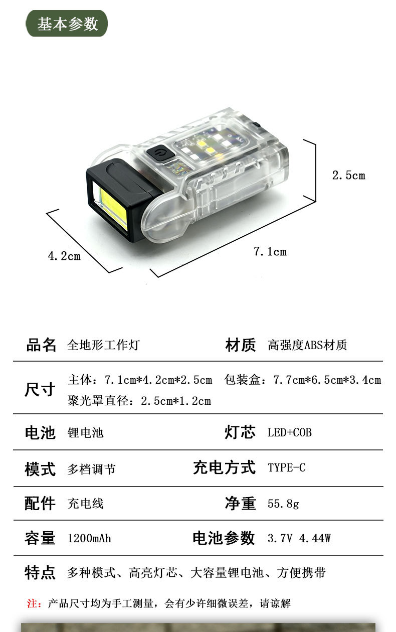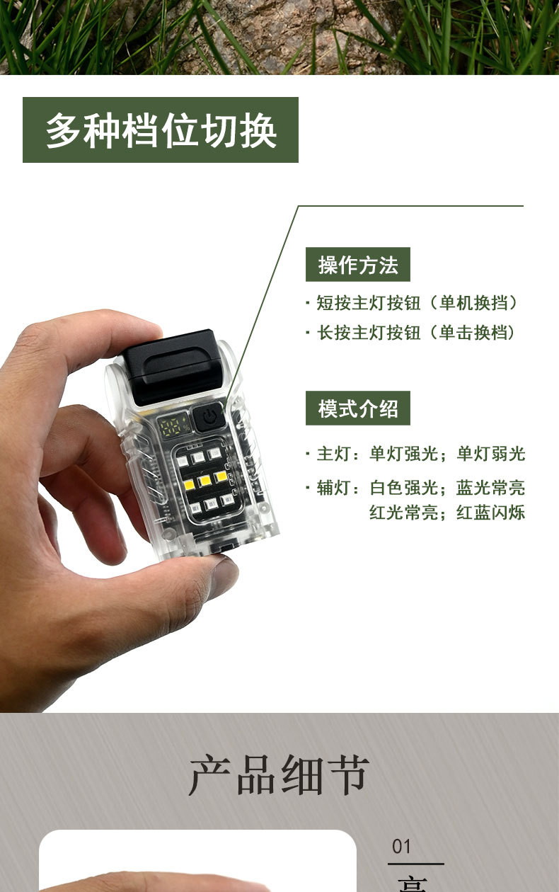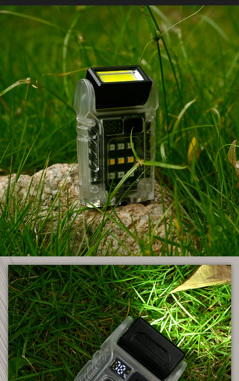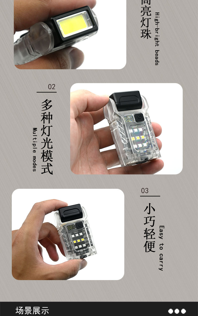戶外可攜式多功能夜光cob工作燈led迷你手電筒強光爆亮長續航夾帽燈