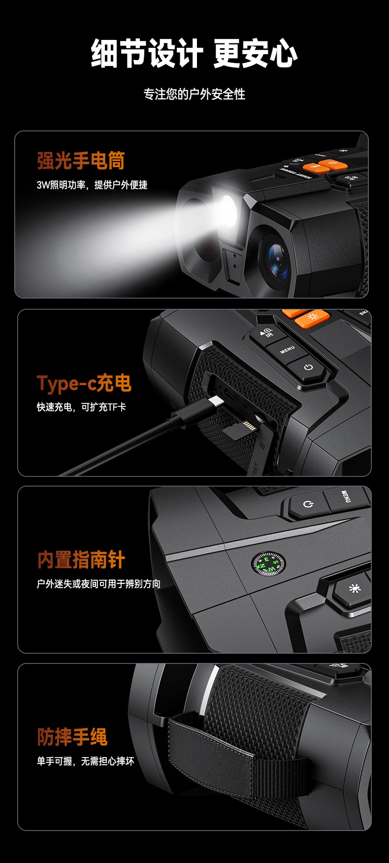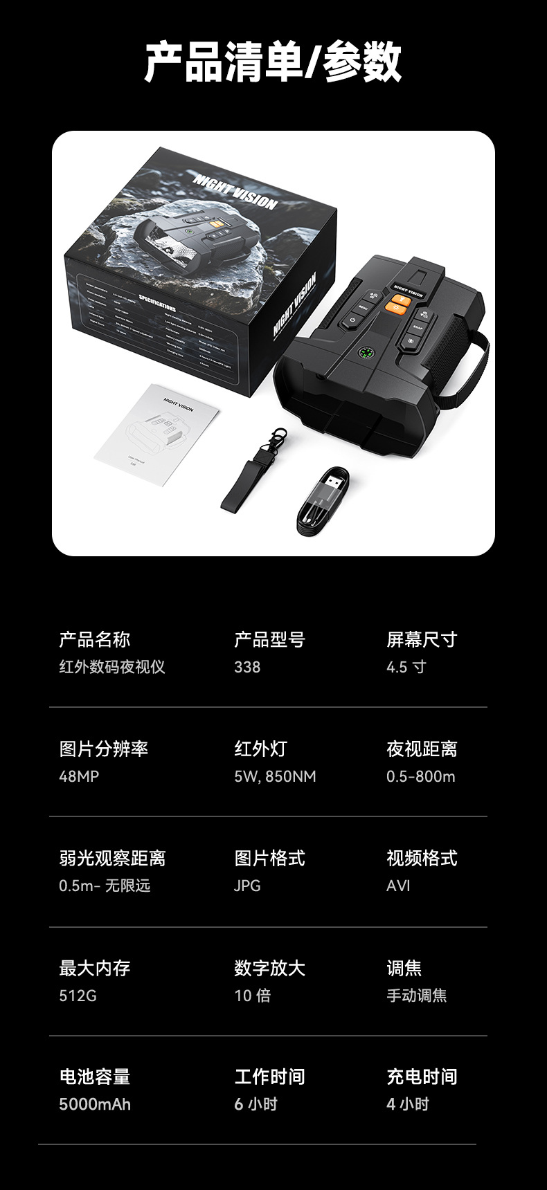 TK爆款夜視儀戶外全彩望遠鏡紅外拍照錄像高清數碼800M帶羅盤